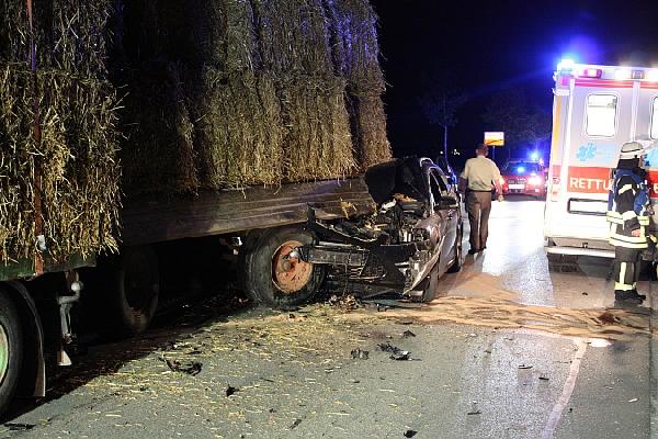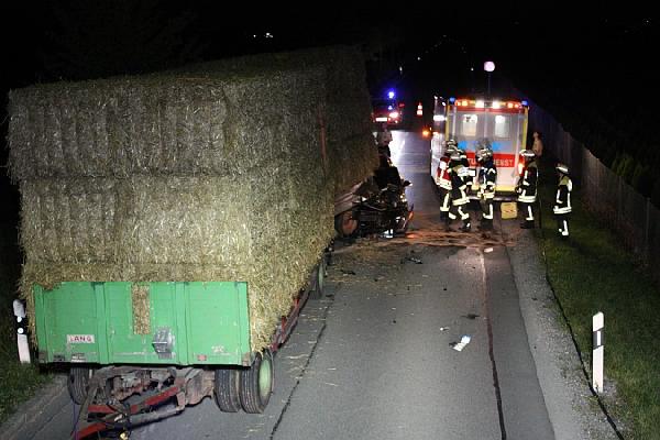 Die Feuerwehr Haar wurde zu einem Verkehrsunfall nach Ottendichl alarmiert. Dort war ein PKW in einen mit Stroh beladenen Anhänger gefahren. Es wurden die Verkehrsabsicherung sichergestellt, sowie die Unfallstelle ausgeleuchtet. Anschließend wurde die Fahrbahn von ausgelaufenden Betriebsstoffen, sowie dem Stroh gereinigt. Ebenso kam während der Aufräumarbeiten der Rettungsspreizer zum Einsatz, um verkeilte Fahrzeugteile am Anhänger wieder zu trennen.