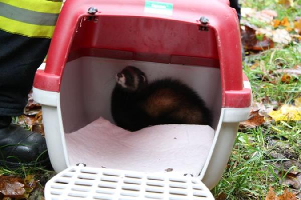 Ein Marder hatte sich in den Lichtschacht eines Freizeitheimes verirrt und kam nicht mehr selber heraus. Das verängstigte Tier vergrub sich unter einer Trennmauer und versuchte sich zu verstecken. Die Feuerwehr konnte den Marder schließlich mit einem Kescher einfangen und in eine Tiertransportbox verstauen.