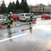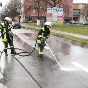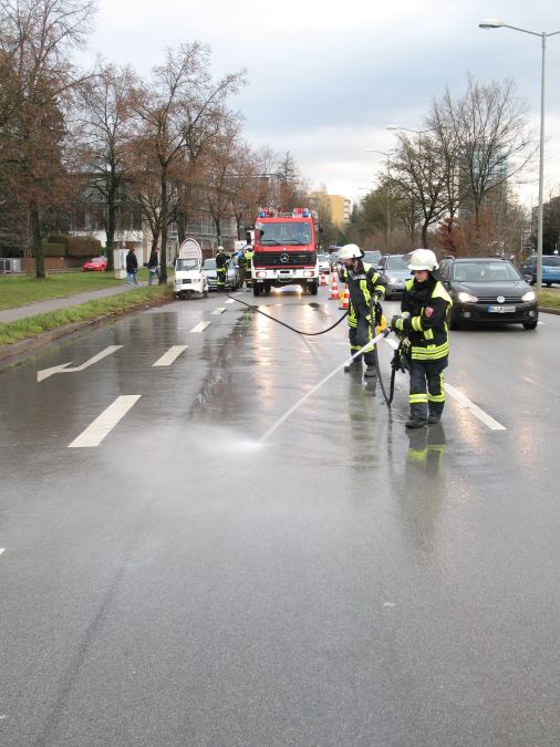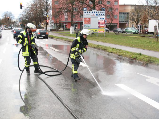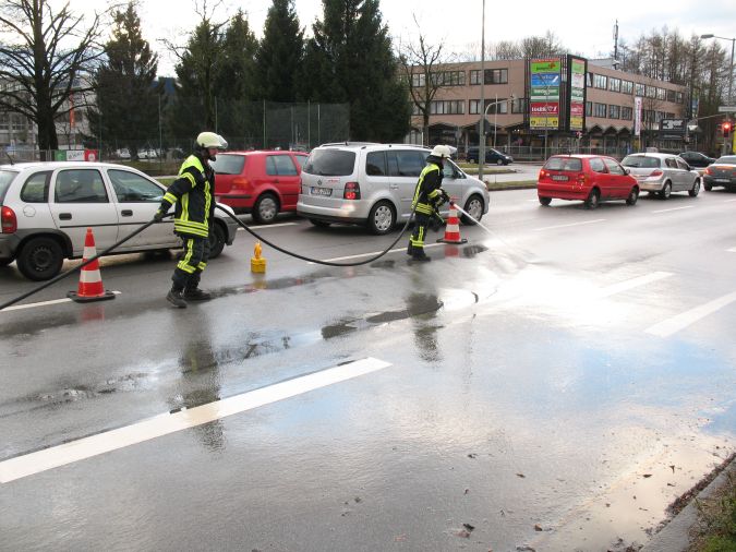 Die Kontrolle der Feuerwehr ergab, dass sich im Kreuzungsbereich der B304 mit der Blumenstraße stadteinwärts vor der Ampel eine Dieselspur befand. In Absprache mit dem ebenfalls anwesenden Straßenmeister übernam die Feuerwehr die Grobreinigung der Fahrbahn. Die endgültige Beseitigung veranlasst die Straßenmeisterei.