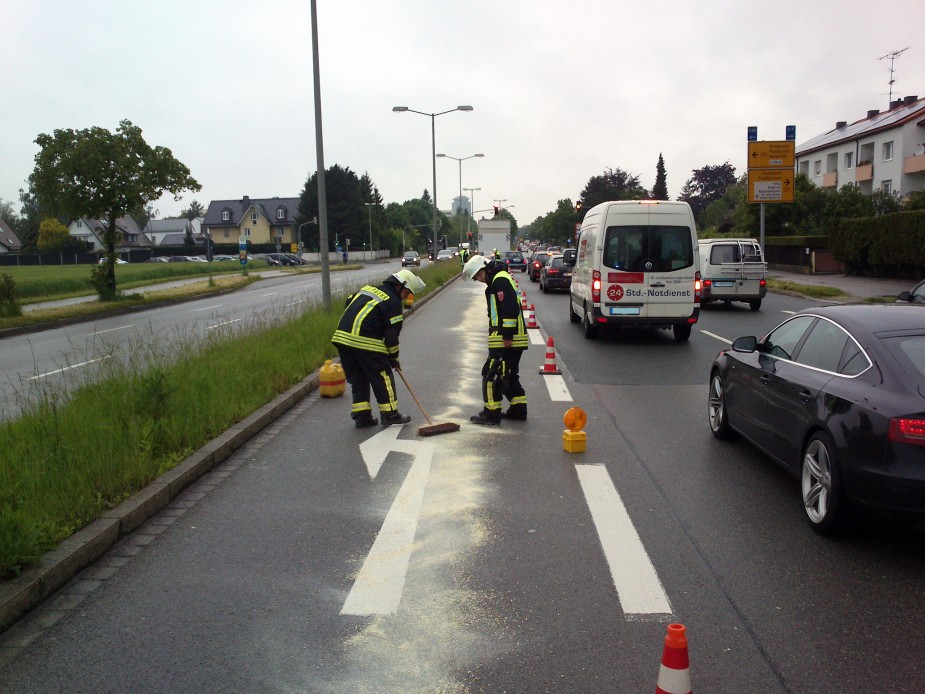 Die Feuerwehr Haar übernahm die Reinigung der Abbiegespur und des Kreuzungsbereichs, die Straßenmeisterei die restliche Strecke.
