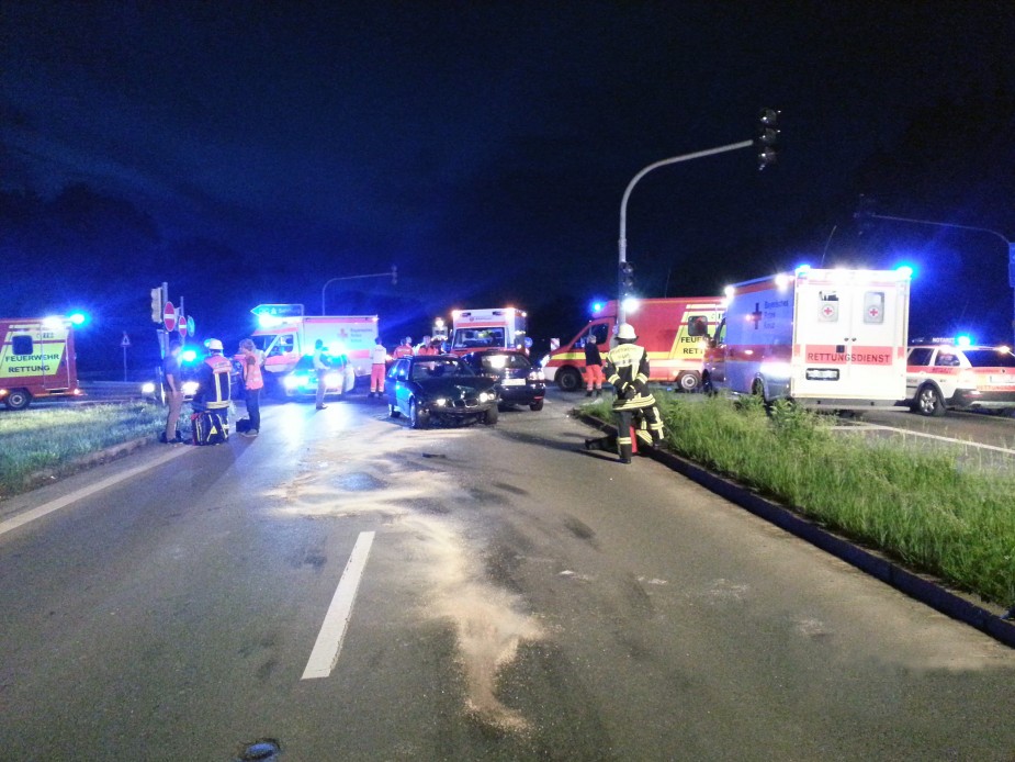 Die Feuerwehr leuchtete die Einsatzstelle aus und unterstützte mit der Feuerwehrärztin und Responder-Personal die Versorgung der Verletzten. Nach der Unfallaufnahme durch die Polizei musste der Kreuzungsbereich von ausgelaufenen Flüssigkeiten und PKW-Teilen gereinigt werden. Während der Arbeiten war die B304 stadteinwärts komplett gesperrt, der Verkehr wurde umgeleitet.