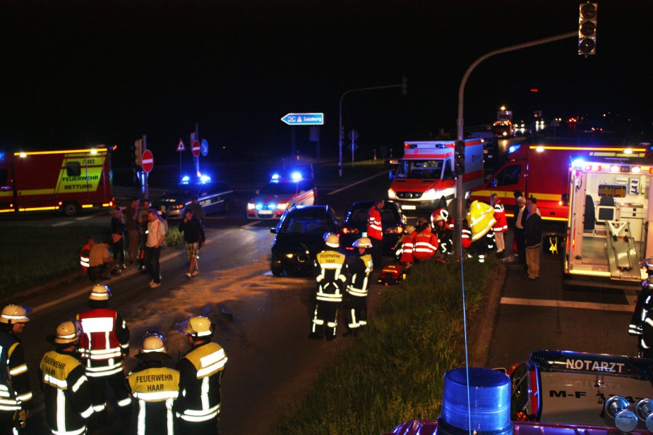 Die Feuerwehr Haar wurde zu einem Verkehrsunfall auf die B304 in Höhe der Kreuzung zum Jagdfeldring alarmiert.
