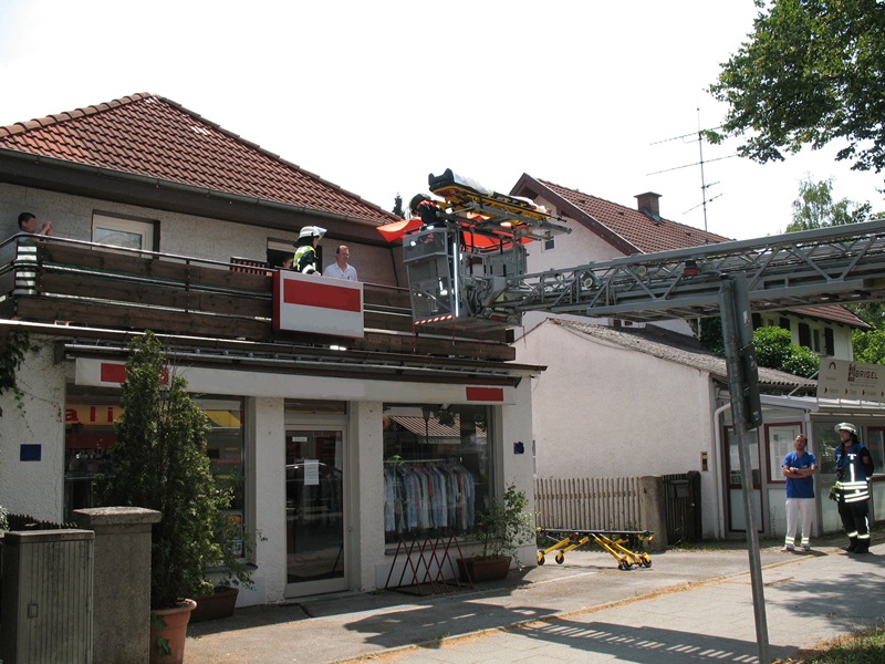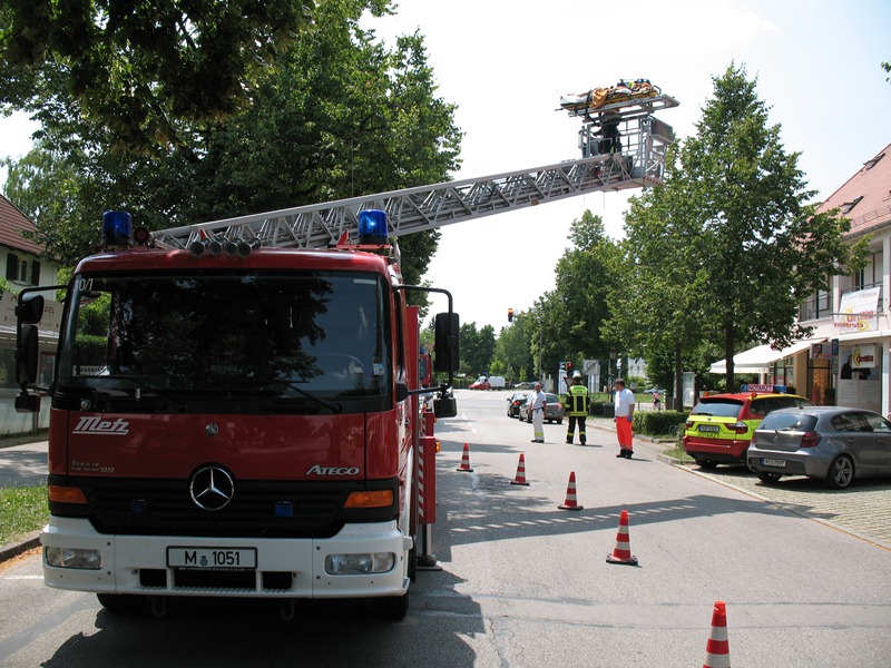 Die Drehleiter der Feuerwehr Haar wurde in die Leibstrasse alarmiert, um eine Person mittels der Krankentragehalterung liegend zu Boden zu bringen. Das Treppenhaus war für einen Transport mit der Krankentrage zu klein. Nach Übergabe der Patientin an den Rettungsdienst konnte die Feuerwehr wieder abrücken.