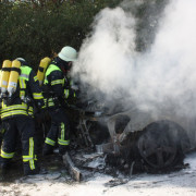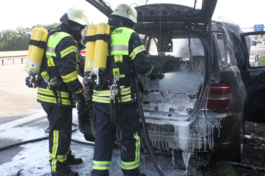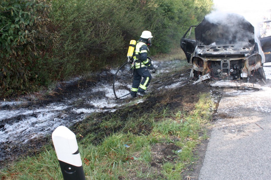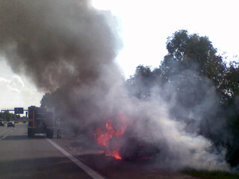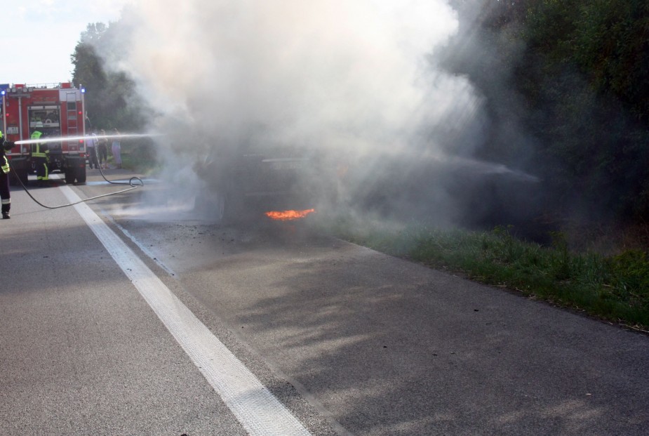 Bei der Ankunft der Feuerwehr Haar stand etwa einen Kilometer vor der Anschlussstelle Hohenbrunn ein PKW in Vollbrand, die Rauchsäule war weithin sichtbar. Da der PKW auf dem Standstreifen stand, war bereits der Grünstreifen neben der Autobahn mit in Brand geraten. Mit mehreren Rohren konnte das Feuer schnell unter Kontrolle gebracht und schließlich abgelöscht werden. Die Insassen konnten sich selbst und das Gepäck rechtzeitig aus dem Fahrzeug in Sicherheit bringen und kamen mit dem Schrecken davon. Am Fahrzeug entstand Totalschaden. Während der Arbeiten musste die rechte Fahrspur gesperrt werden.