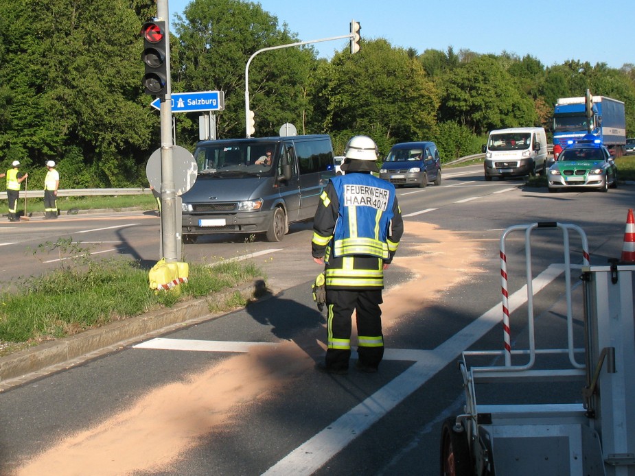 Die Feuerwehr Haar wurde zu einer Ölspur auf der B304 bei der Anschlussstelle Haar alarmiert.
