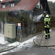 Beim Eintreffen der Feuerwehr hatten Anwohner den Brand einer Thujen-Hecke bereits weitgehend ablöschen können. Mit dem Schnellangriff übernahm die Feuerwehr die Nachlöscharbeiten.