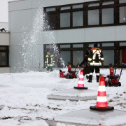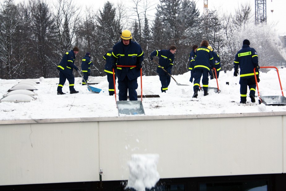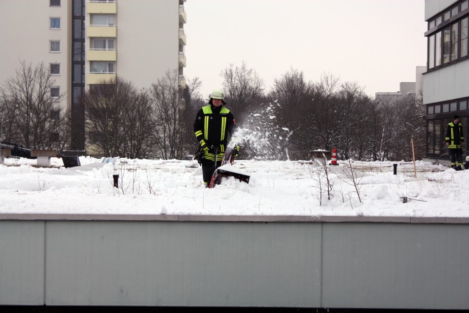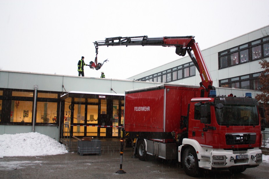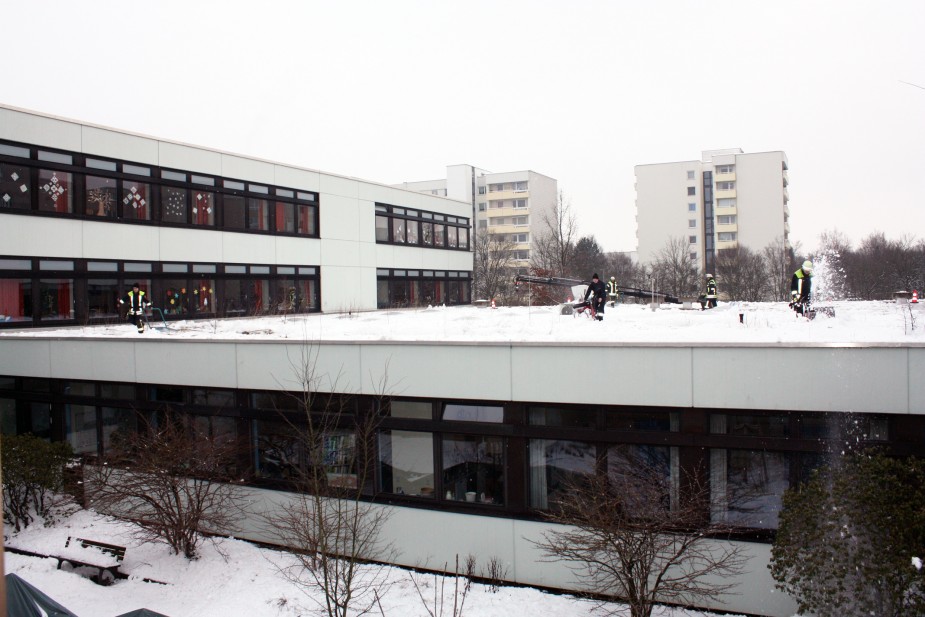 Die Feuerwehr Haar wurde zusammen mit dem THW-München Land zum Räumen der Dächer am Ernst-Mach-Gymnasium alarmiert.