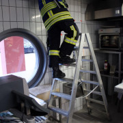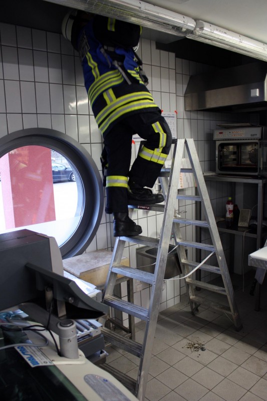 Im Metzgereibereich eines Ladengeschäftes war es an einem Kabel der Lüftungsanlage zu einem Schmorbrand gekommen. Ein Angestellter alarmierte nach dem Ablöschen mit einem Feuerlöscher die Feuerwehr zur Nachschau. Die Einsatzkräfte kontrollierten mit einer Wärmebildkamera die Lüftungsanlage, die beim Eintreffen der Feuerwehr noch deutlich erwärmt war, sich aber mit der Zeit abkühlte. Aufgrund des wahrnehmbaren Geruchs nach verbranntem Kunststoff veranlasste die Feuerwehr Schadstoffmessungen durch den ABC-Zug. Nach der negativen Messung konnten Feuerwehr und ABC-Zug wieder abrücken.