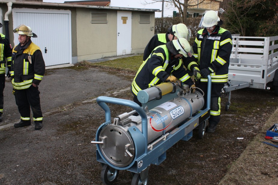 Eine undefinierbare Gasflasche war in Neubiberg am Straßenrand zusammen mit weiterem Sperrmüll aufgefunden worden. Aufgrund des Zustandes der Flasche konnte nicht geklärt werden, ob sich noch Gas in der Flasche befand und um welches Gas es sich handelte. Zur Sicherheit verbrachte die Feuerwehr die Gasflasche im Bergebehälter zu einer Spezialfirma nach Unterschleißheim. Bei der fachgerechten Entsorgung stellte sich heraus, dass noch eine Restmenge Gas in der Flasche vorhanden war.