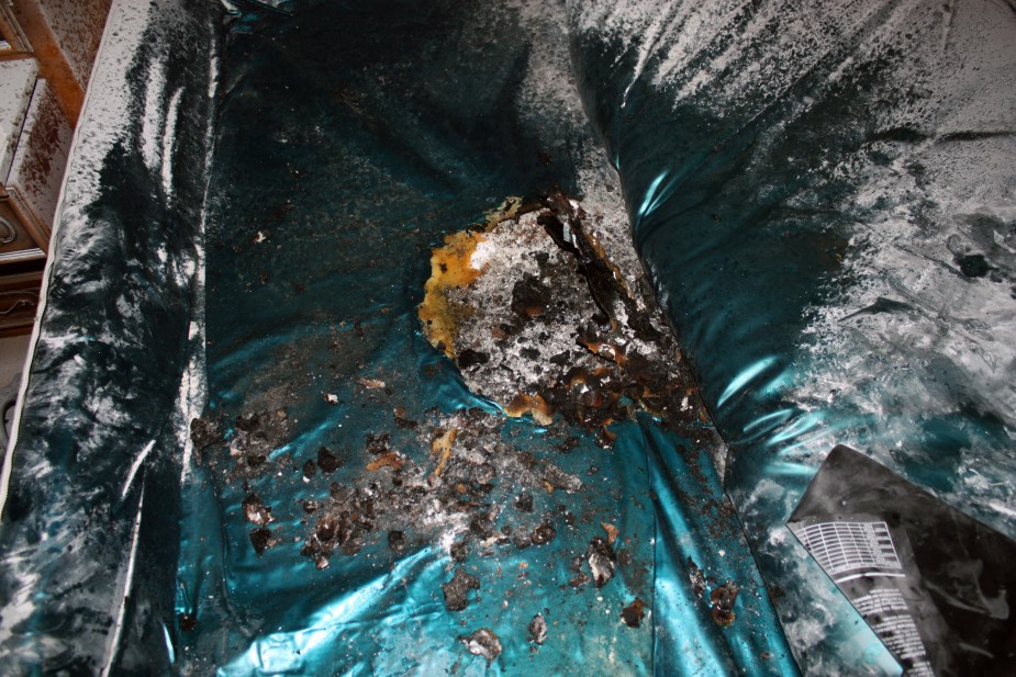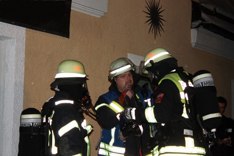 Ein Trupp unter schwerem Atemschutz ging mit einem C-Schlauch in das Zimmer im ersten Obergeschoss vor. Dort fand er eine Matratze vor, die vermutlich aufgrund einer elektrischen Heizung in Brand geraten war. Die Matratze wurde ins Freie verbracht und dort abgelöscht. Die Kontrolle der Bettkonstruktion mit der Wärmebildkamera ergab lediglich eine Hitzestelle, die gekühlt werden musste. Zum Entrauchen des Gebäudes kam ein Überdrucklüfter zum Einsatz.