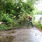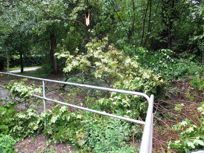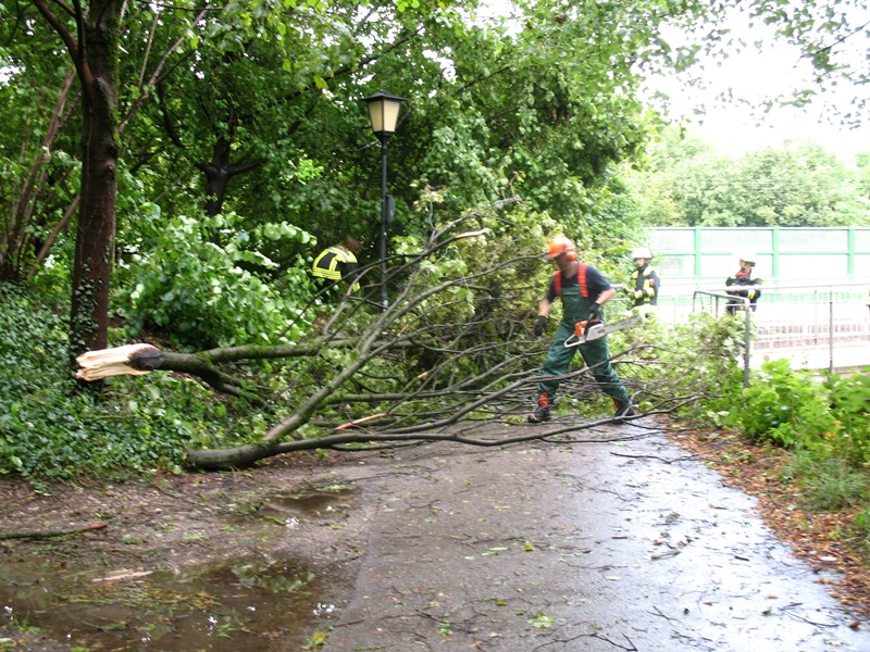 Ein Baum war am Fußgängerüberweg umgestürzt und musste von der Feuerwehr mit einer Kettensäge entfernt werden. Anschließend reinigten die Einsatzkräfte noch den Weg von herumliegenden Ästen. Zusätzlich musste noch eine Katze aus dem Astgewirr befreit werden.