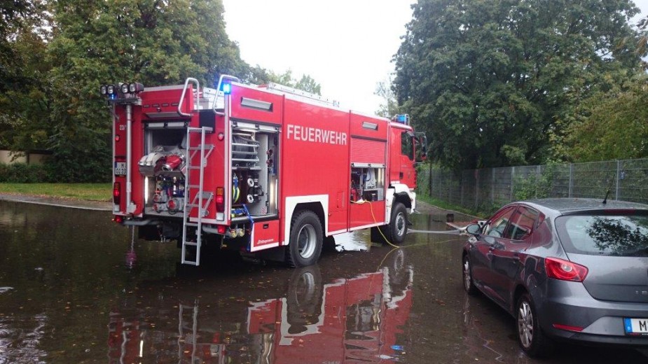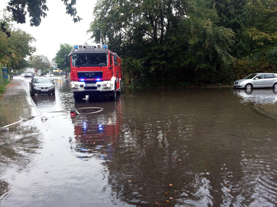 Nach einem Starkregen wurde die Feuerwehr Haar zur Kreuzung der Franz-Schubert-Straße mit der Waldluststraße alarmiert.