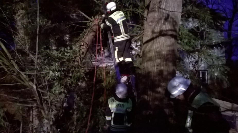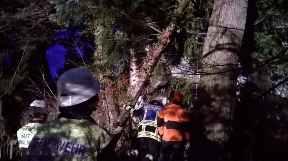 Dort hatte der Sturm einen Baum in Schräglage gebracht, so dass er in eine Stromleitung zu fallen drohte. Die Feuerwehr Haar konnte den Baum mit der Kettensäge umschneiden, so dass keine weitere Gefahr mehr von ihm ausging.