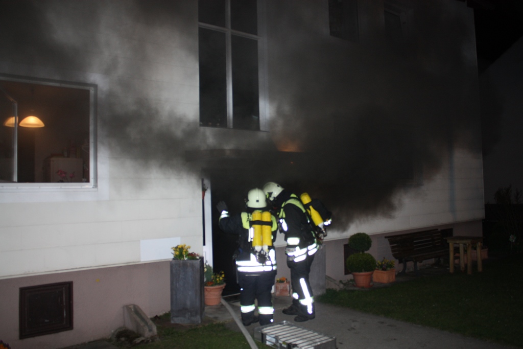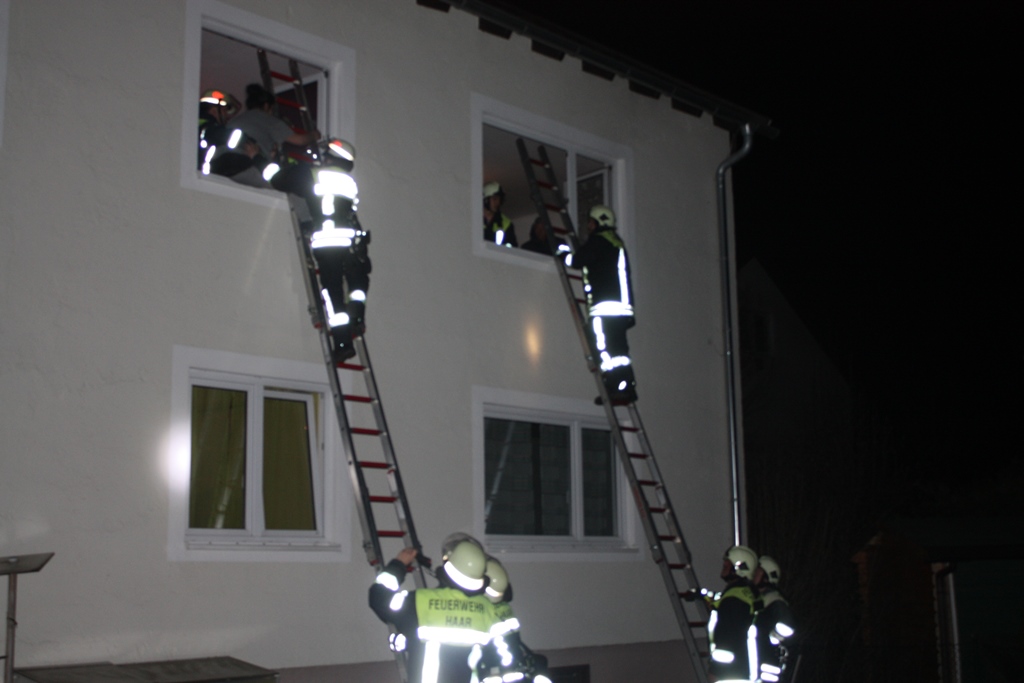 Bei Ankunft der Einsatzkräfte vor Ort war der Treppenraum stark verraucht. In Absprache mit dem Einsatzleiter aus Putzbrunn unterstützte die Feuerwehr Haar bei der Brandbekämpfung und Personenrettung. Insgesamt mussten neun Personen aus dem Haus gerettet werden, teilweise mit Fluchthauben über die Steckleiter. Die Drehleiter konnte aufgrund der Zugänglichkeit des Hauses nicht in Einsatz genommen werden. Weitere Details siehe auch Homepage Feuerwehr Putzbrunn