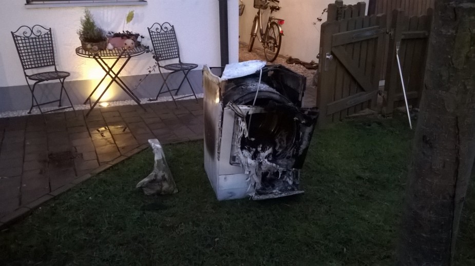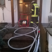 Bei der Ankunft der Einsatzkräfte drang dichter Rauch aus dem Kellerfenster einer Doppelhaushälfte. Ein Trupp unter schwerem Atemschutz ging mit einem C-Strahlrohr in den Innenangriff, mit Hilfe der Wärmebildkamera ließ sich der Brandherd schnell lokalisieren: Ein Wäschetrockner war in Brand geraten und hatte das Haus bereits stark verraucht. Es wurde umgehend eine Überdruckbelüftung installiert, um das Gebäude von dem giftigen Brandrauch zu befreien. Ein zweiter Trupp unter schwerem Atemschutz kontrollierte das Gebäude, in dem sich keine Bewohner mehr befanden. Nach dem raschen Ablöschen des Brandes konnte der Trockner aus dem Keller ins Freie verbracht werden.