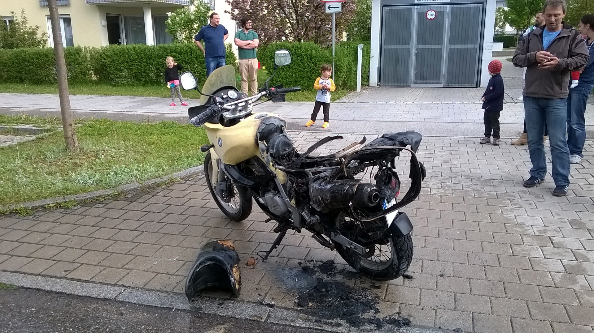 Bei Ankunft des Kommandowagens stand ein Motorrad in einer Tiefgarageneinfahrt. Der hintere Teil des Motorrades stand zu diesem Zeitpunkt im Vollbrand. Mit einem Pulverlöscher wurde das Feuer schnell gelöscht. Nach Eintreffen des ersten Löschfahrzeuges wurden mittels Wasser aus dem Schnellangriff Nachlöscharbeiten durchgeführt und die Einfahrt, sowie die Straße vom Lösch-Pulver befreit.