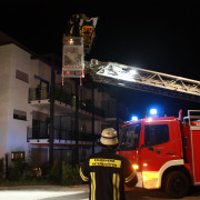 Die Drehleiter der Feuerwehr Haar wurde nach Vaterstetten in den Kastanienweg alarmiert.