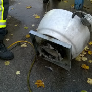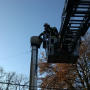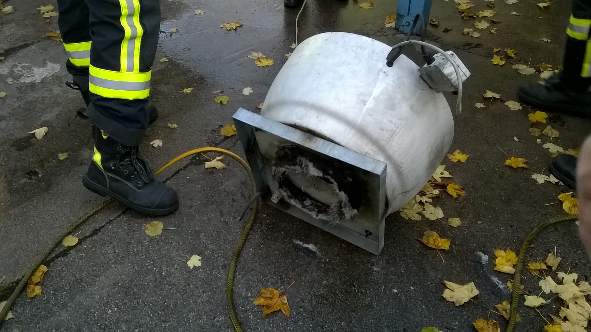 In einem Außenkamin war eine starke Hitzeentwicklung feststellbar. Unter schwerem Atemschutz kontrollierten die Einsatzkräfte von der Drehleiter aus den Kamin. Dabei konnte ein defekter Elektro-Lüfter als Ursache ausgemacht werden. Der Lüfter wurde ausgebaut und sicherheitshalber der Kamin mit CO2 abgelöscht. Mit der Wärmebildkamera kontrollierten die Einsatzkräfte abschließend den Kamin und konnten Entwarnung geben - die Hitzequelle war entfernt worden. Sicherheitshalber wird der zuständige Kaminkehrer in den kommenden Tagen den Kamin abschließend kontrollieren.