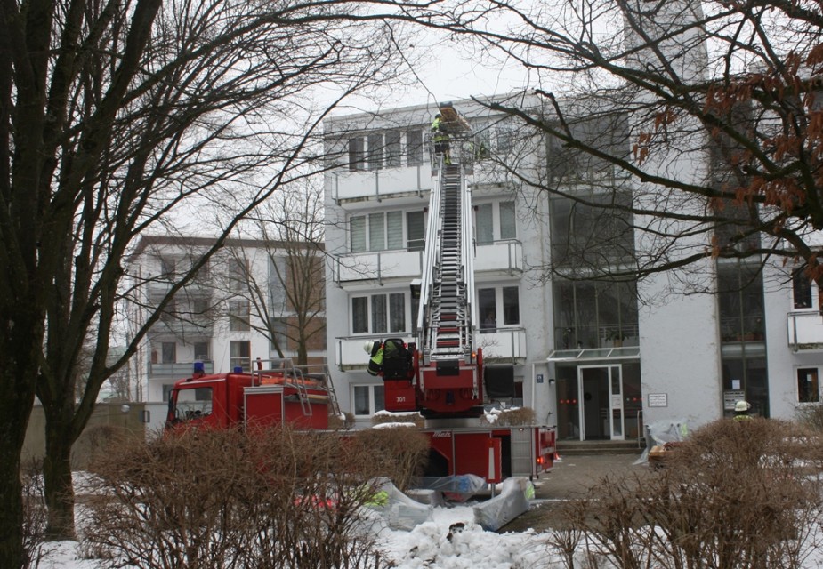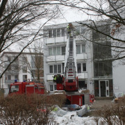Das Treppenhaus war für den erforderlichen Transport mit der Krankentrage zu klein, so dass ein Patient liegend mittels der Krankentragehalterung der Drehleiter zu Boden gebracht wurde. Nach Übergabe des Patienten an den Rettungsdienst konnte die Feuerwehr wieder abrücken.