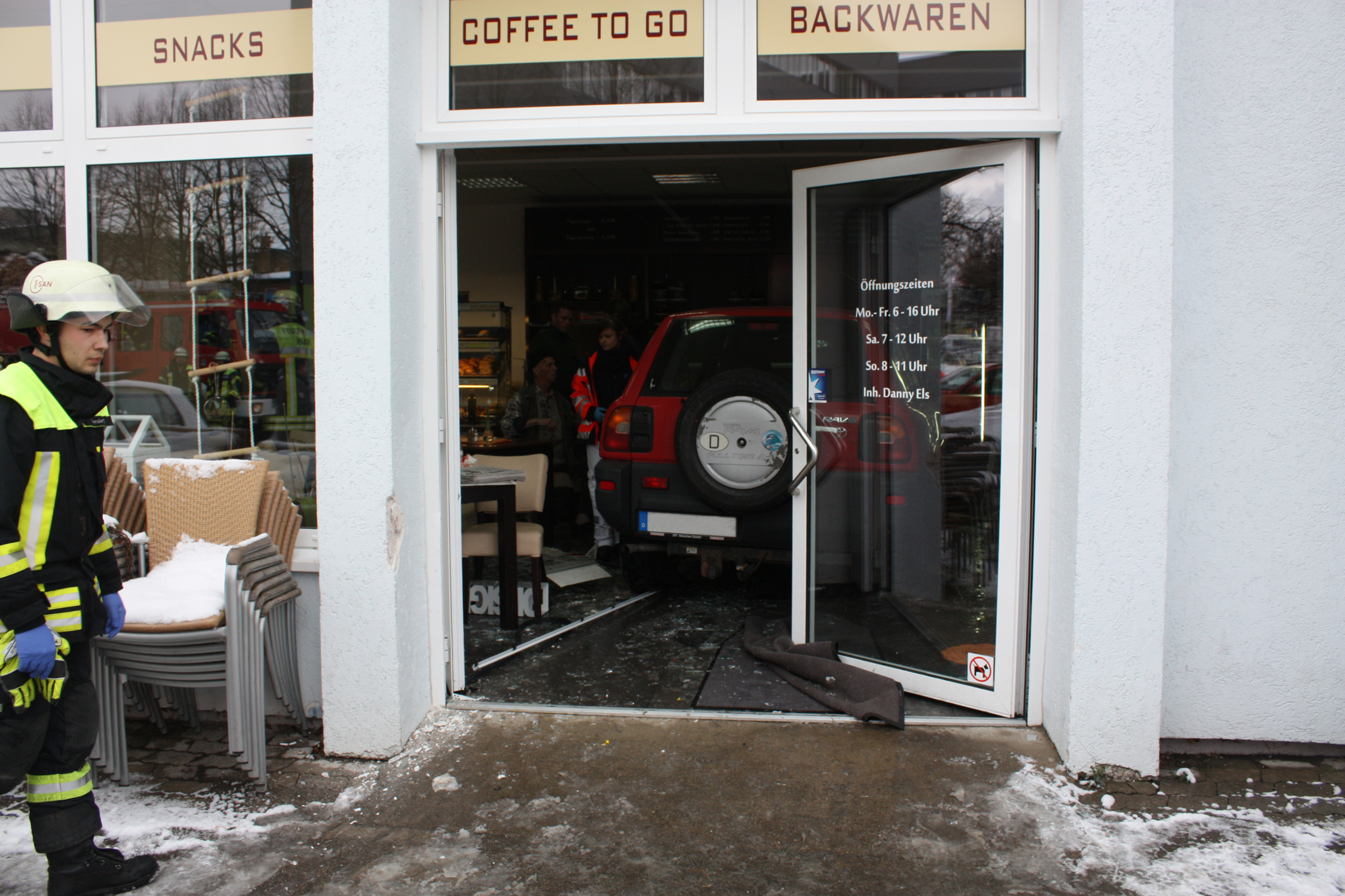 Dort war ein PKW durch die Eingangstür in einen Laden gefahren und hatte dabei mehrere Personen teilweise schwer verletzt. Die alarmierten Kräfte der Feuerwehr Haar und des Rettungsdienstes fanden in dem Laden vor Ort vier verletzte Personen vor und leisteten umgehend Erste Hilfe. Zur weiteren Versorgung der Patienten kamen drei Rettungswagen und ein Notarzt zum Einsatz. Insgesamt mussten dabei drei Personen in umliegende Krankenhäuser eingeliefert werden.