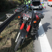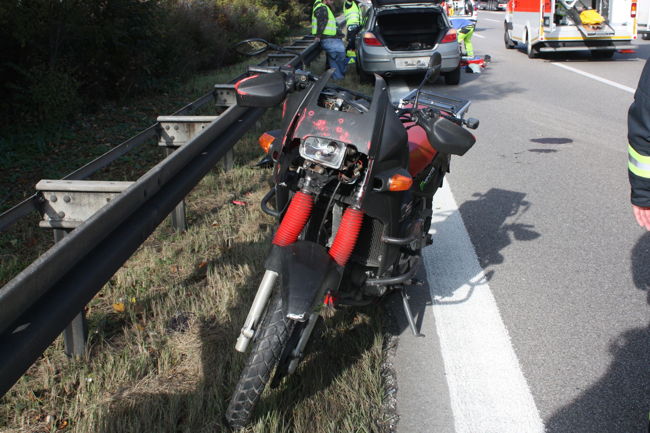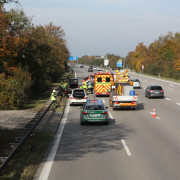 Ein Motorradfahrer war auf einen PKW aufgefahren und anschließend gestürzt. Die Feuerwehr Haar sicherte die Einsatzstelle ab und unterstützte bei der Versorgung des Motorradfahrers.