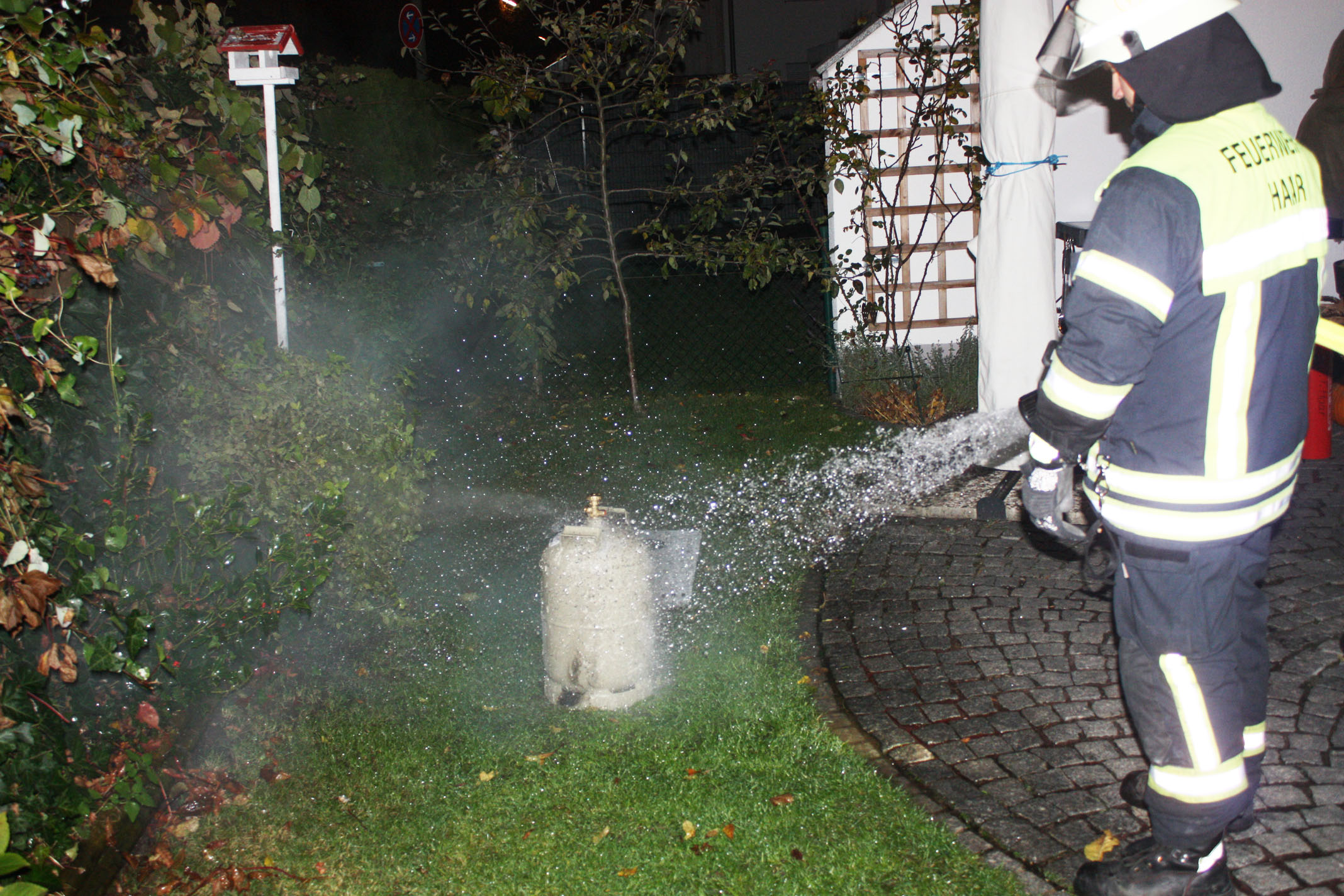 Die Feuerwehr Haar wurde zu einer brennenden Gasflasche in die Rosenstraße alarmiert.