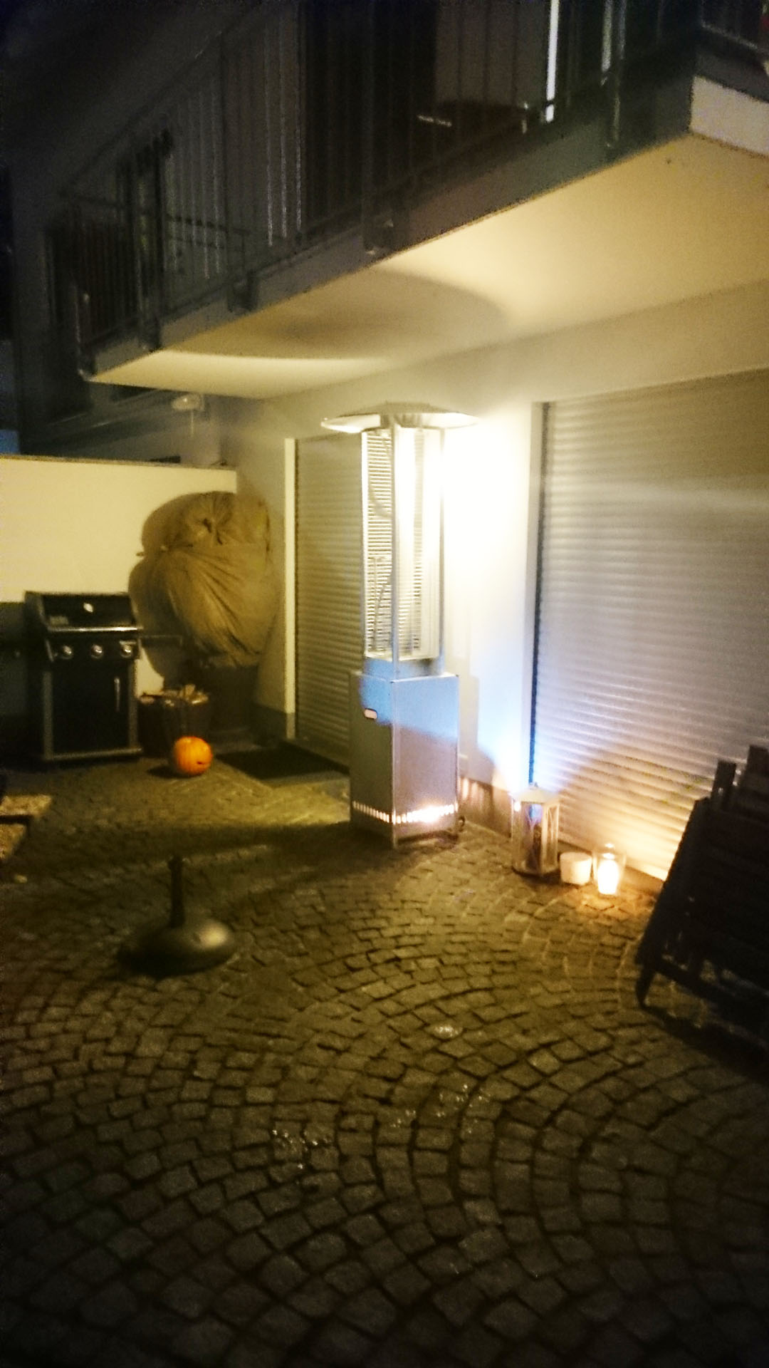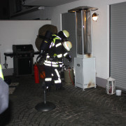 In einem Heizpilz war im Fußbereich bei der Gasflasche offenes Feuer sichtbar. Mit einem CO2-Löscher konnten die Einsatzkräfte das Feuer rasch ersticken und die Flasche ausbauen. Anschließend musste die Flasche mit einem C-Rohr weiter gekühlt werden, bis die Wärmebildkamera keine kritische Temperatur mehr anzeigte. Da die Ursache für den unkontrollierten Gasaustritt micht klar ermittelt werden konnte, musste der Rest des Gases kontrolliert abgelassen werden. Dabei wurden ständig Messungen mit einem Gasspürgerät durchgeführt, um eine weitere Gefährdung auszuschließen.