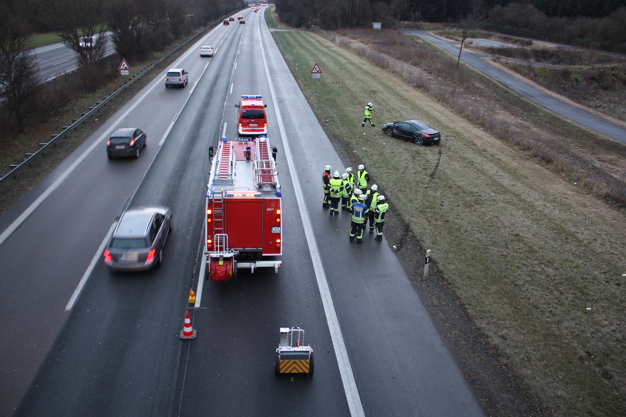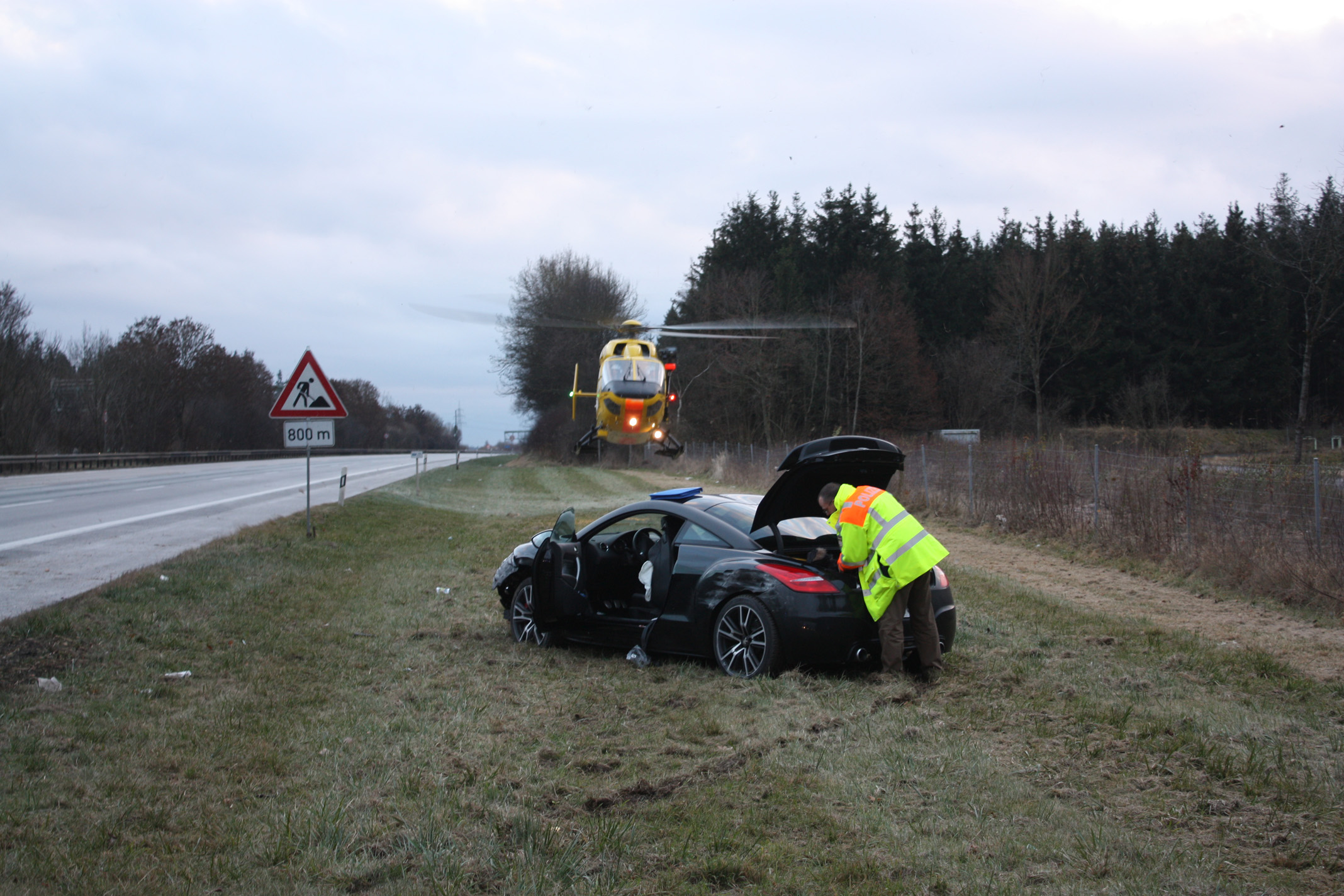 Die Einsatzkräfte der Feuerwehr Haar sicherten die Einsatzstelle ab, so dass der Rettungshubschrauber Christoph 1 sicher landen bzw. starten und die Polizei den Unfall aufnehmen konnte. Der Unfallfahrer wurde mit dem RTW zur Behandlung in eine Münchener Klinik transportiert.