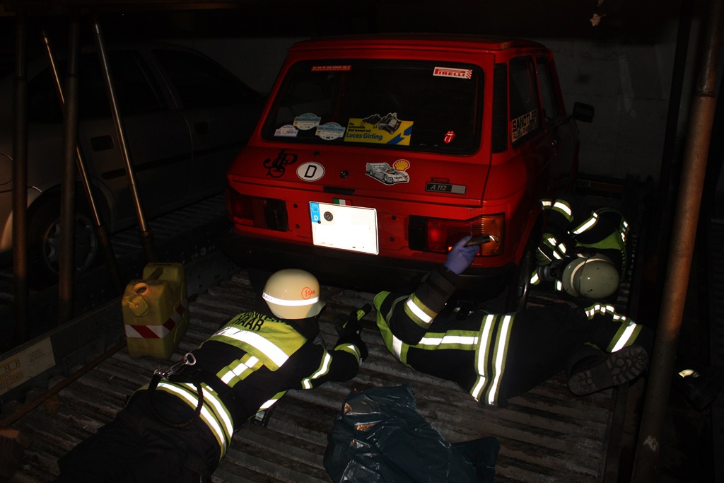 Aus einem Oldtimer PKW war in einer Tiefgarage Benzin ausgelaufen. Gegen 20.50 Uhr wurde die Feuerwehr alarmiert, weil Anwohner an der Mozartstr. einen merkwürdigen Geruch in einem Gebäude wahrgenommen haben.
