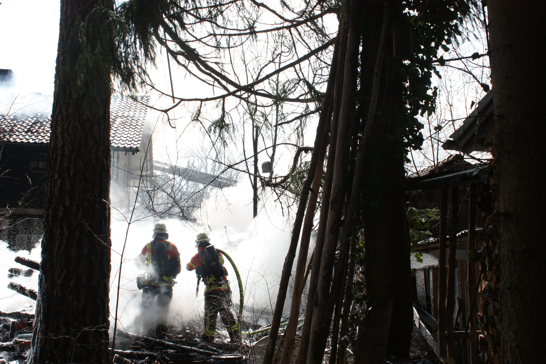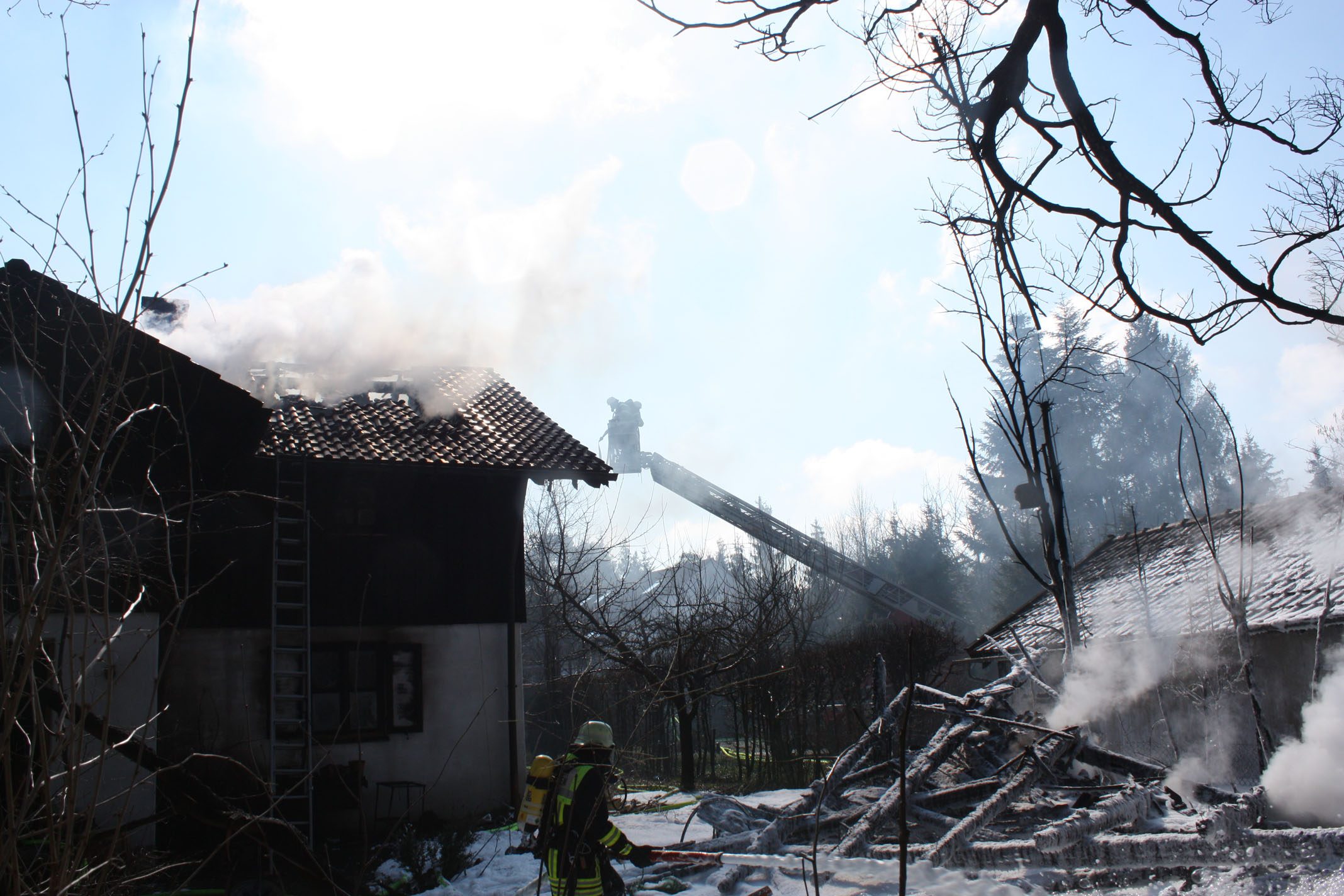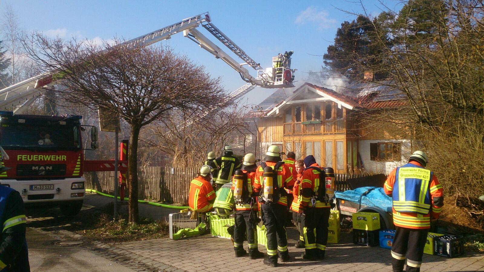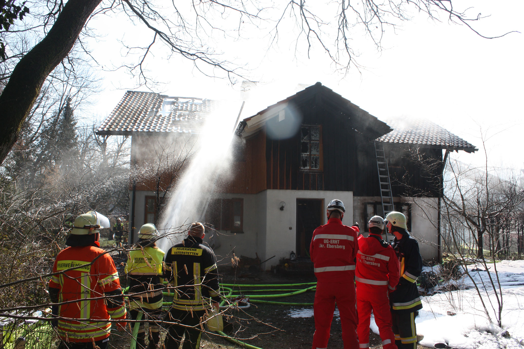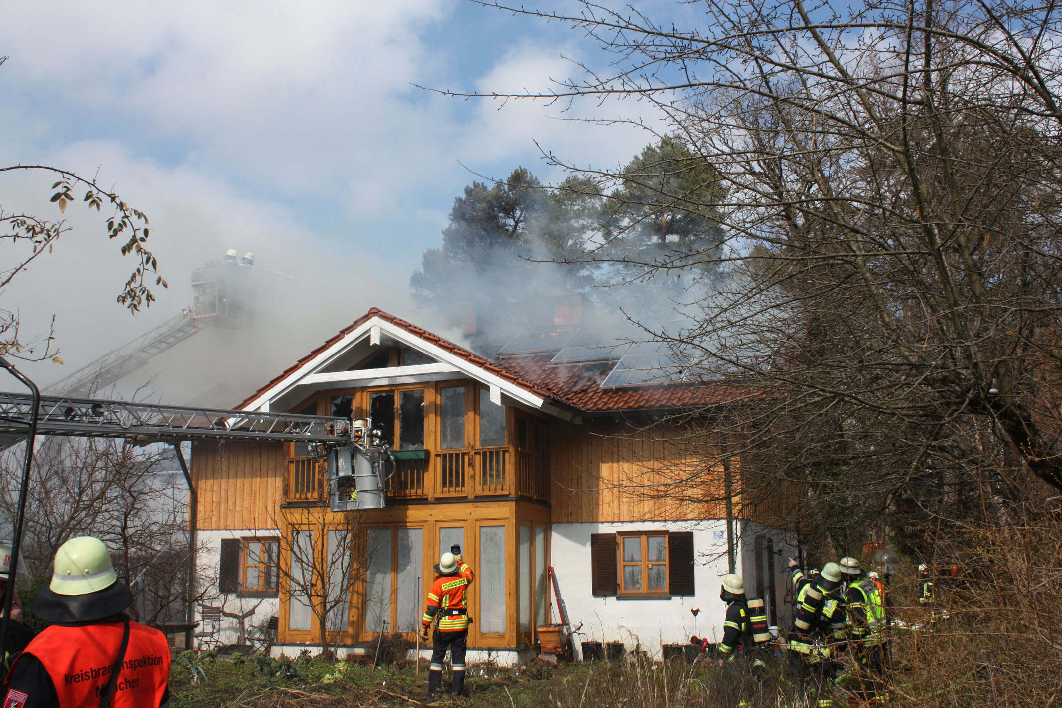 Ein Großaufgebot an Feuerwehren aus dem Landkreis Ebersberg, sowie weiteren Feuerwehren aus dem Landkreis München mit mehreren Drehleitern, sowie Hubrettungsfahrzeugen kamen zum Einsatz. Etliche Trupps unter Atemschutz öffneten das Dach und löschten die Glutnester ab. Die auf dem Dach angebrachte Photovoltaik-Anlage erschwerte dabei die Löscharbeiten. Der Schuppen, von dem der Brand ausging, brannte vollkommen nieder. Nach bisherigen Meldungen kamen keine Personen zu Schaden, am Wohnhaus entstand jedoch erheblicher Sachschaden.