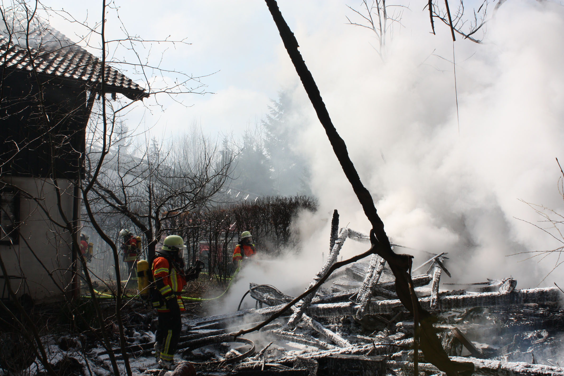 Inzwischen stellte sich heraus, dass der Brand eines Schuppens auf das angrenzende Wohnhaus übergegriffen hatte und dort bereits der Dachstuhl in Flammen stand.
