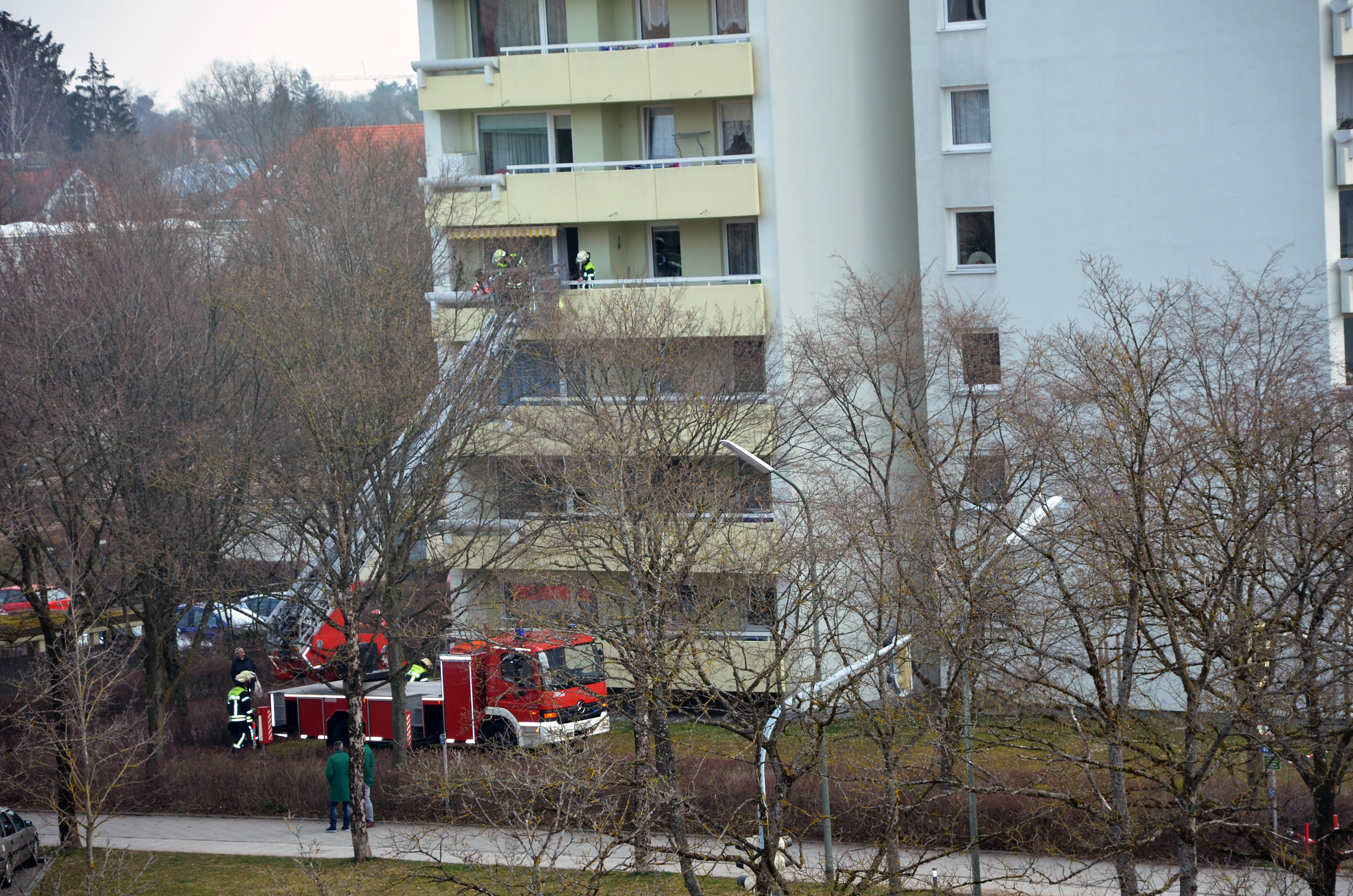 Der Rettungsdienst forderte die Feuerwehr Haar in den Jagdfeldring zur Unterstützung mit der Drehleiter nach.