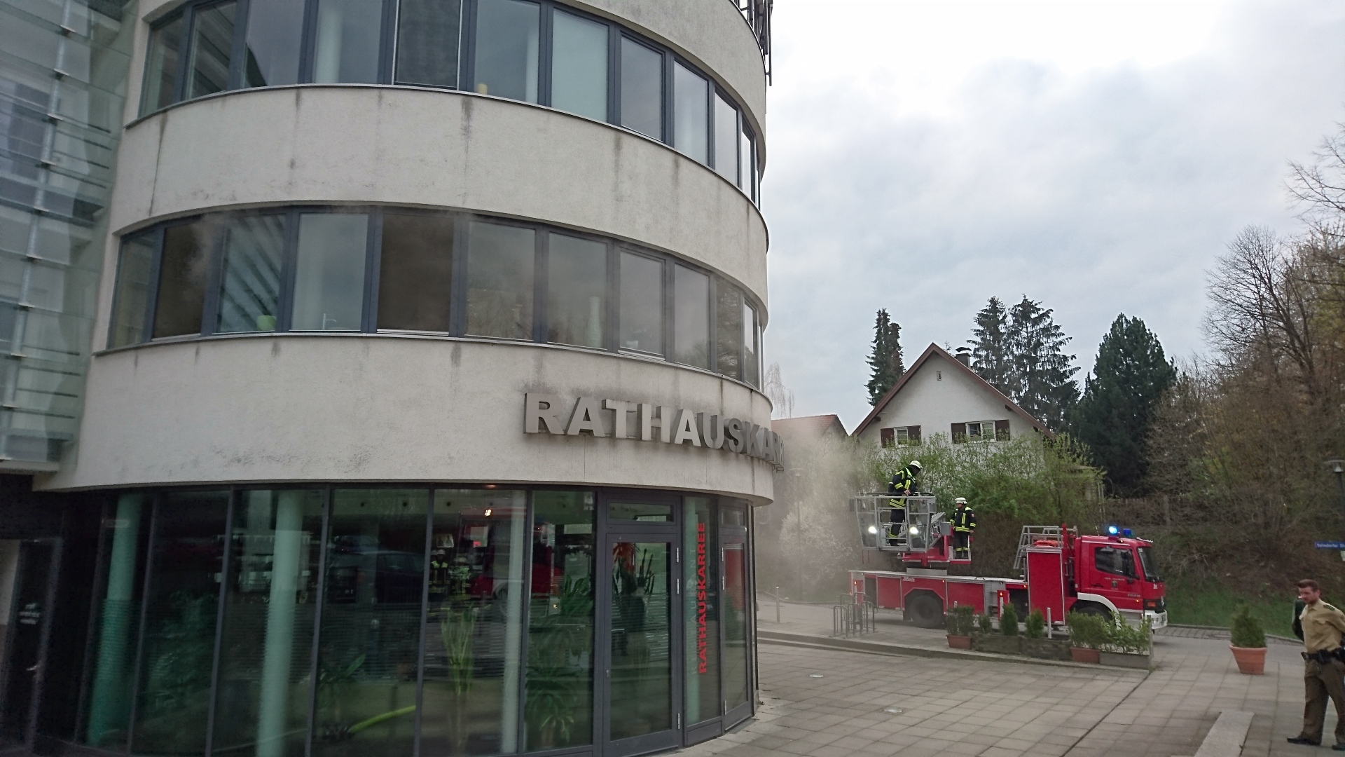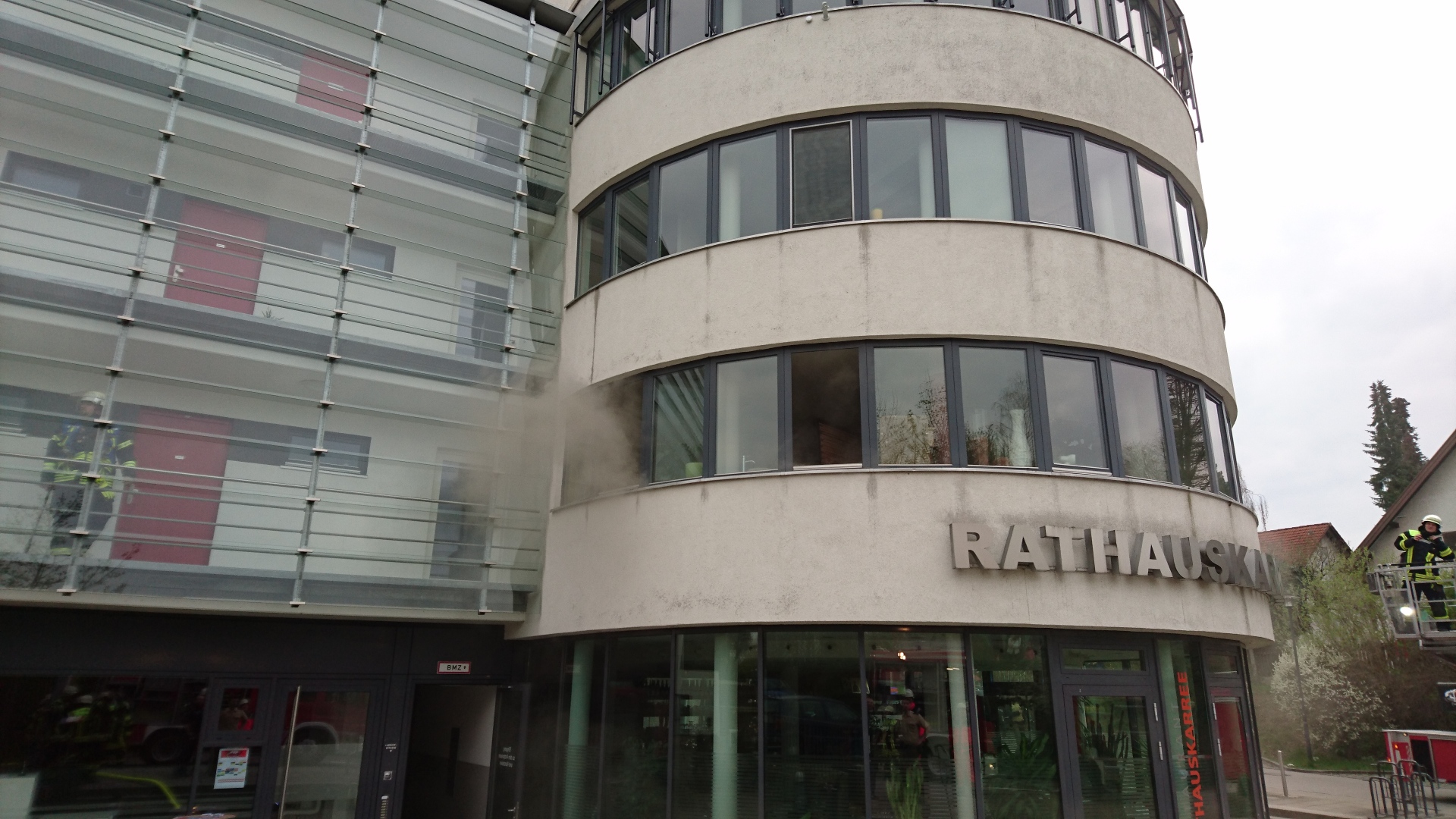 Mit der Drehleiter wurde das komplette Gebäude von außen kontrolliert. Der Brand konnte rasch gelöscht werden, es stellte sich heraus, dass die Praxis gerade in Renovierung war und sich somit weder Personen noch Einrichtungsgegenstände in den Räumlichkeiten befunden hatten.