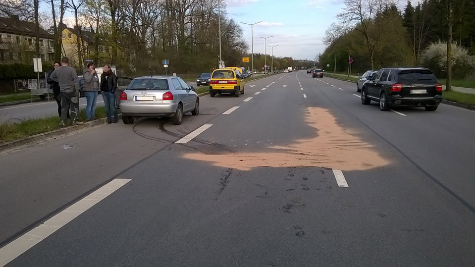Die Feuerwehr Haar wurde zum Fahrbahnreinigen nach einem Verkehrsunfall in die Wasserburgerstraße Ecke Sudetenstraße alarmiert.