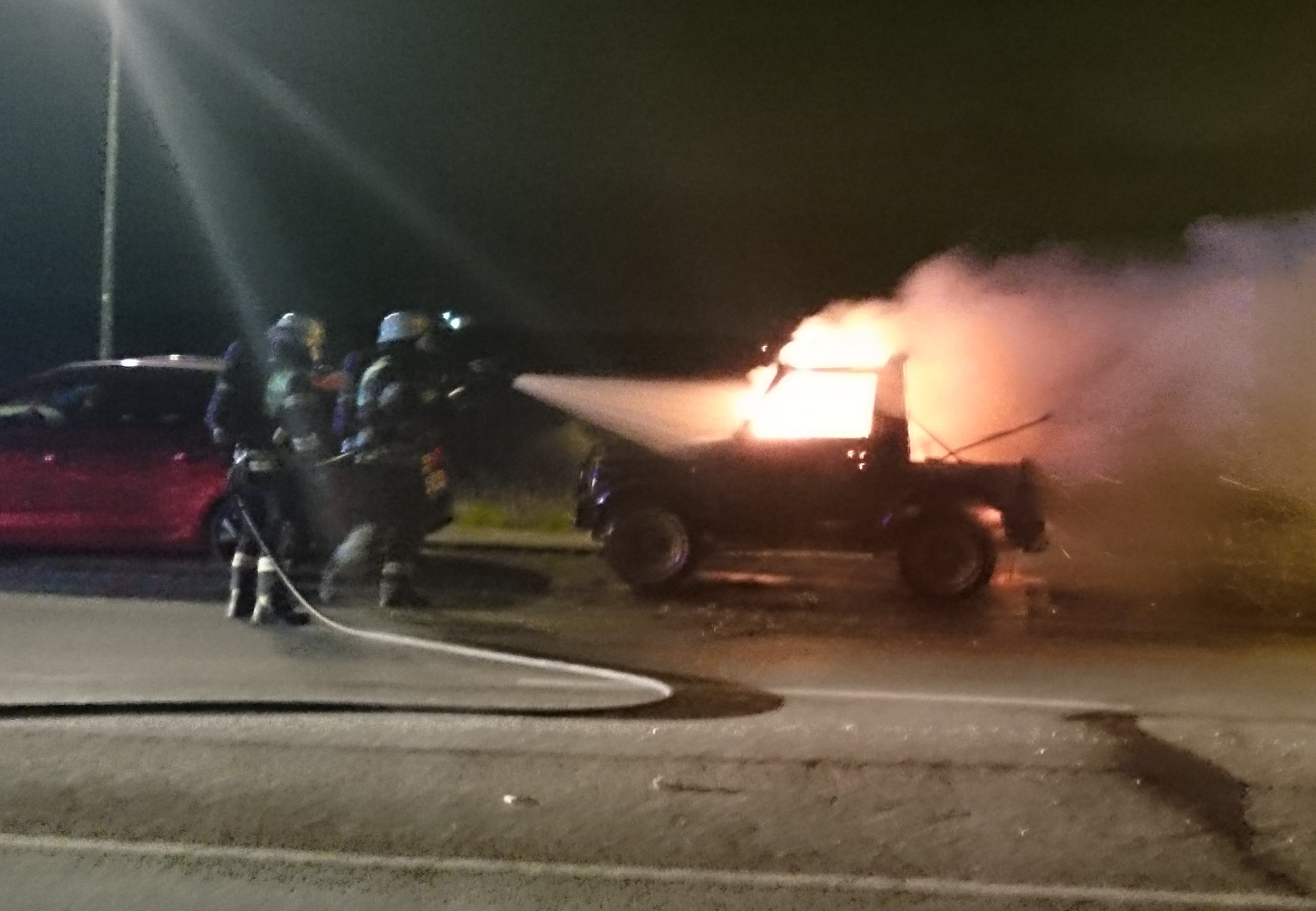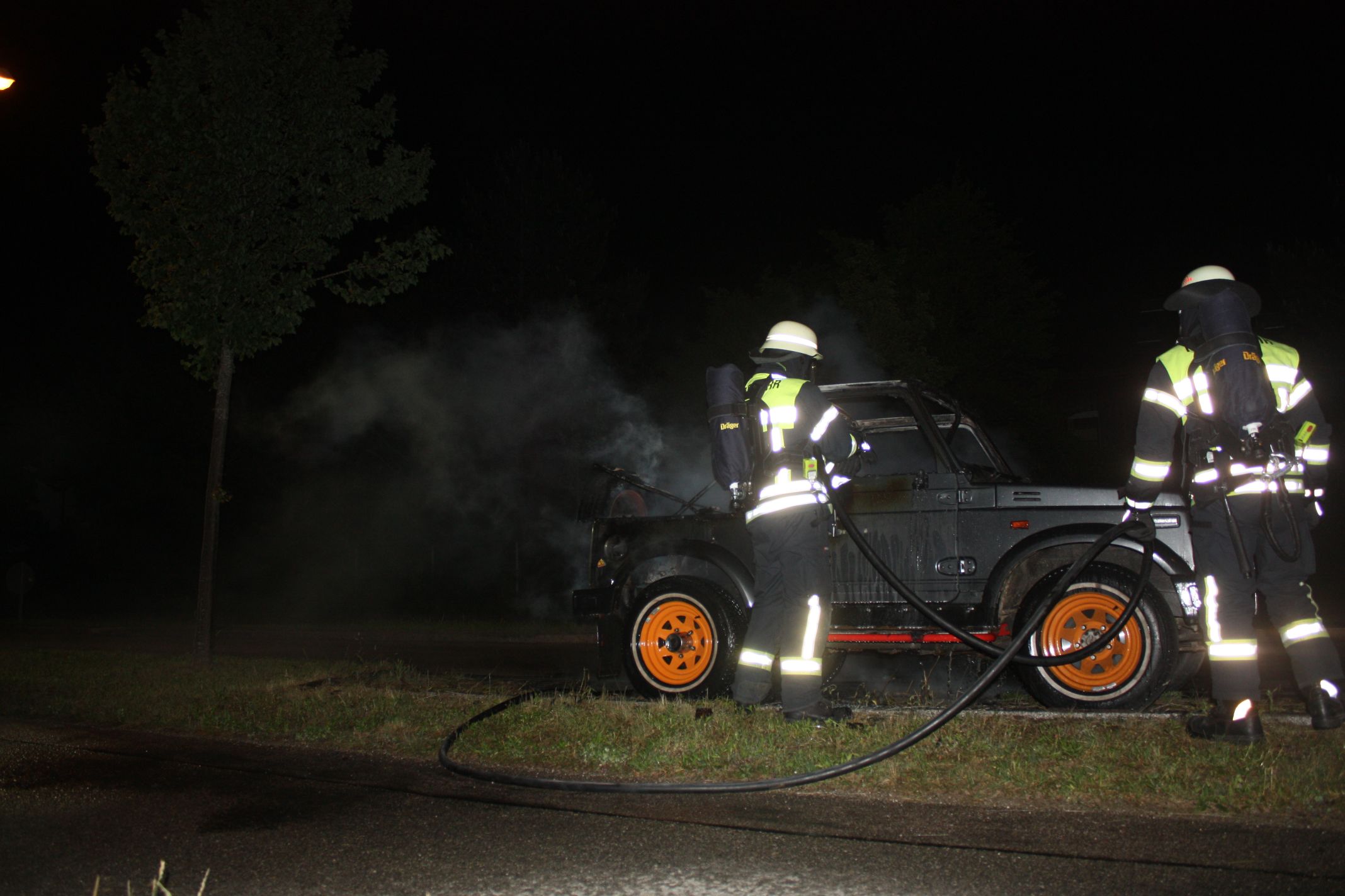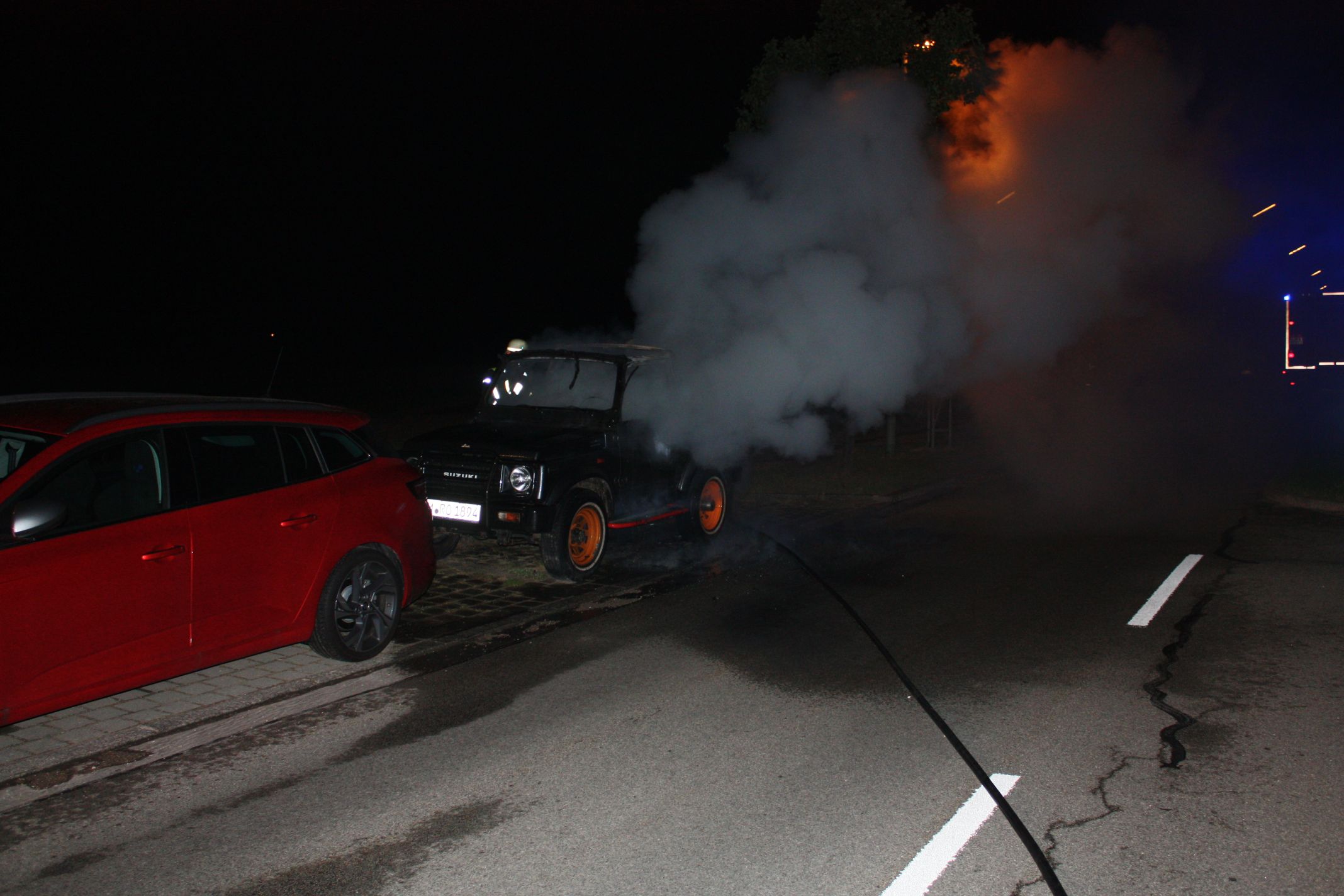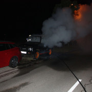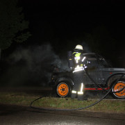 Bei Ankunft der Feuerwehr stand der PKW bereits in Vollbrand und konnte von einem Trupp unter schwerem Atemschutz rasch abgelöscht werden. Zur Sicherheit wurde mit einem Trennschleifer die Motorhaube geöffnet und der Motor mit der Wärmebildkamera kontrolliert.