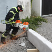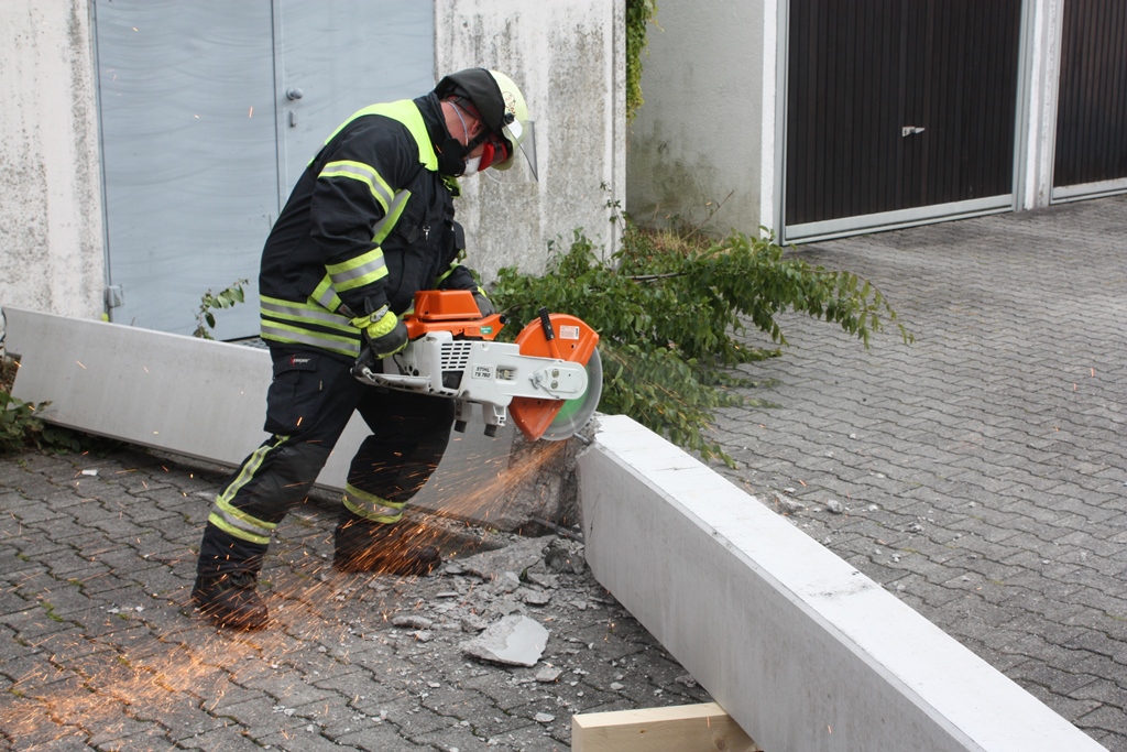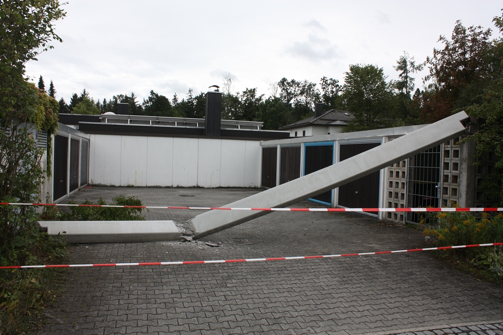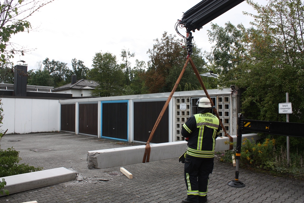Die Feuerwehr Haar wurde in die Ferdinand-Kobell-Straße alarmiert. Dort hatte ein LKW beim Rangieren einen Betonträger beschädigt, der zerbrach und teilweise zu Boden stürzte.