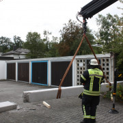 Zur Sicherung musste der restliche Betonträger mit dem Kran des LKW zu Boden gebracht und sicher abgelegt werden.