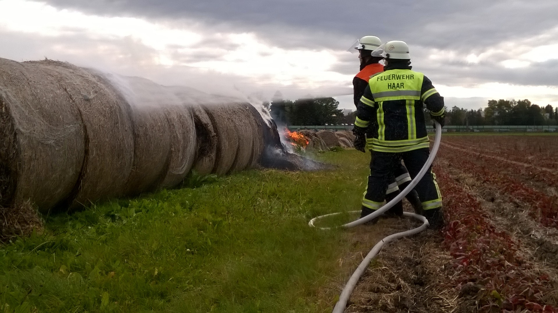 Die Feuerwehr Haar wurde zu brennenden Strohballen in die Lorenz-Huber-Straße alarmiert.