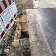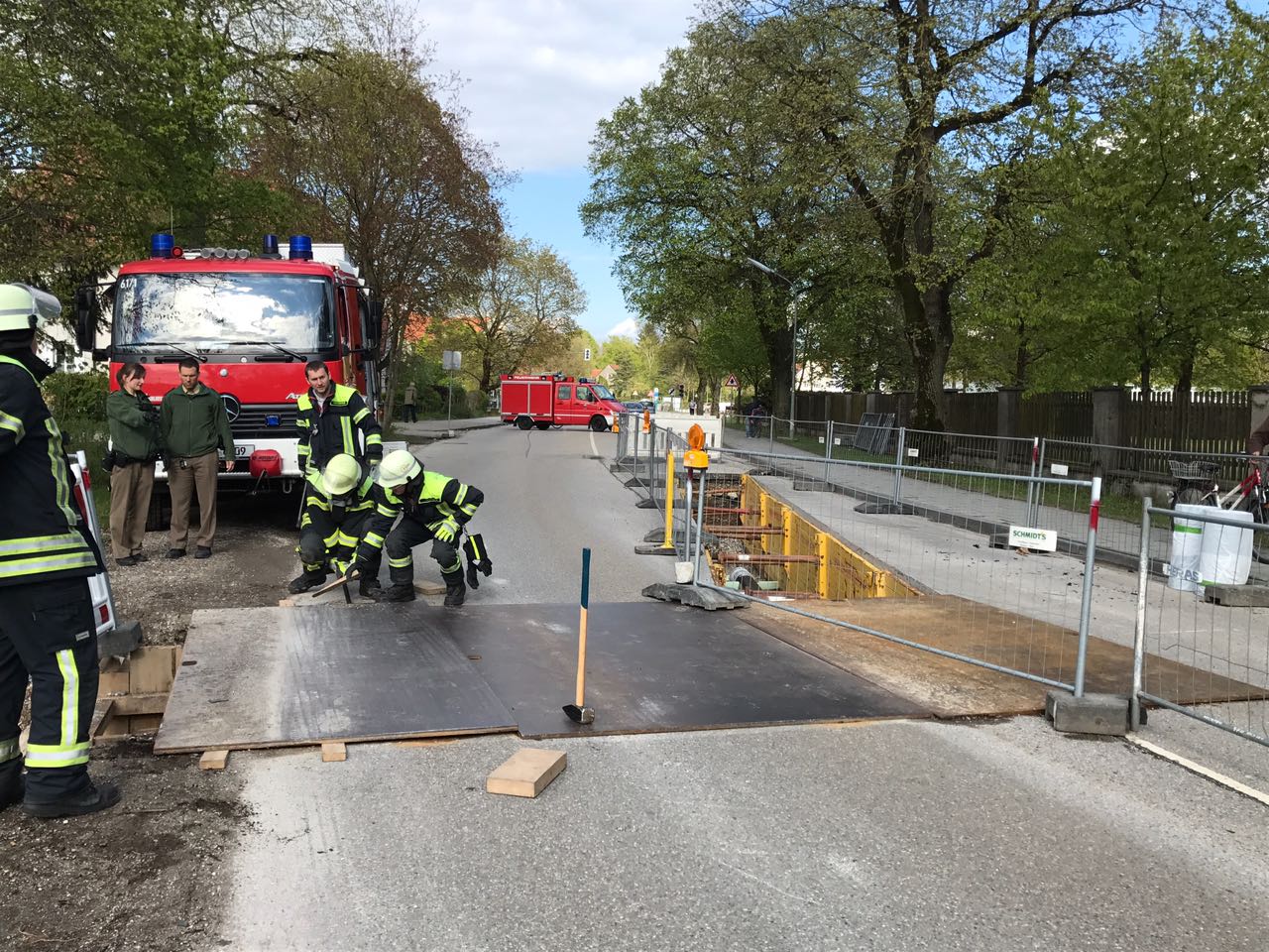 Telefonisch verständigte die Polizei die Feuerwehr Haar, dass in der Leibstraße im Baustellenbereich eine Überfahrbrücke gefährlich verschoben war.
