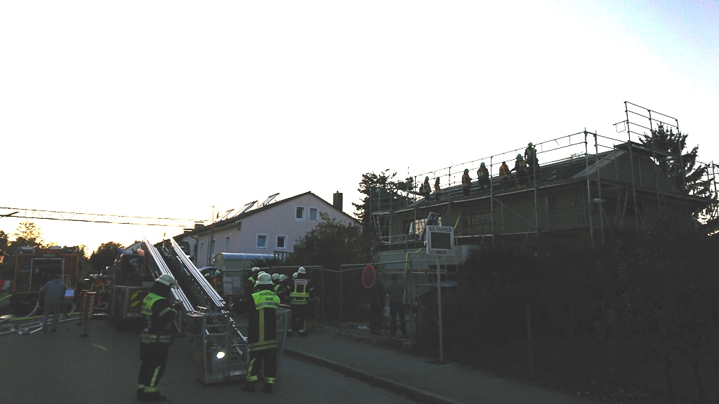 Die Drehleiter der Feuerwehr Haar wurde zur Unterstützung der Feuerwehr Grasbrunn zu einem Dachstuhlbrand in die Harthausener Straße nach Neukeferloh alarmiert.