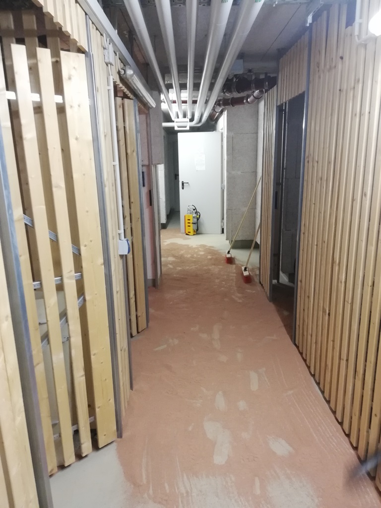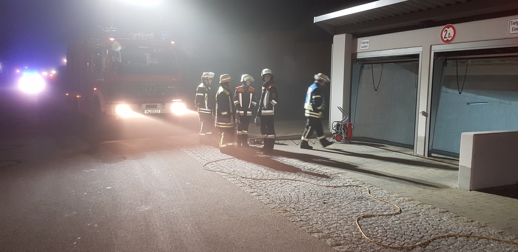 Ein Trupp unter schwerem Atemschutz begann sofort die ausgelaufene Flüssigkeit zu binden und schaffte Abluftöffnungen. Ein weiterer Trupp, ebenfalls unter schwerem Atemschutz, startete mit der Belüftung des Kellers über die Tiefgarage.