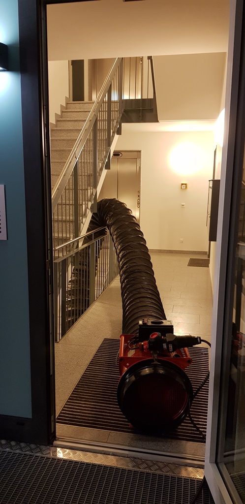 Vor Ort stellte sich heraus, dass im betroffenen Mehrfamilienhaus kein Gasanschluss vorhanden war, also eine andere Ursache vorliegen musste. Die Erkundung ergab, dass in einem Kellerabteil Benzin aus einem Kanister ausgelaufen war und sich am Boden eine größere Pfütze über mehrere Abteile erstreckte.