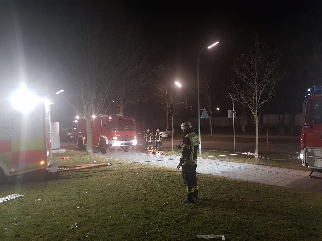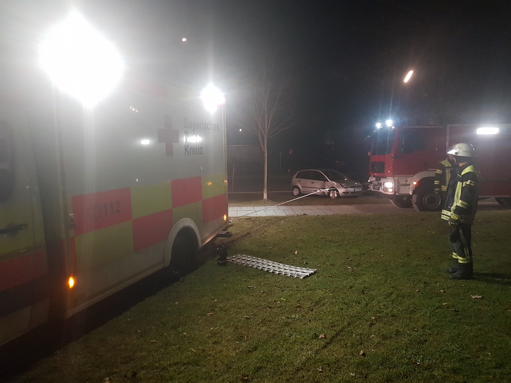 Die Feuerwehr Haar half bei der Bergung eines Rettungswagens der sich in einer Wiese im Jagdfeldring festgefahren hatte.