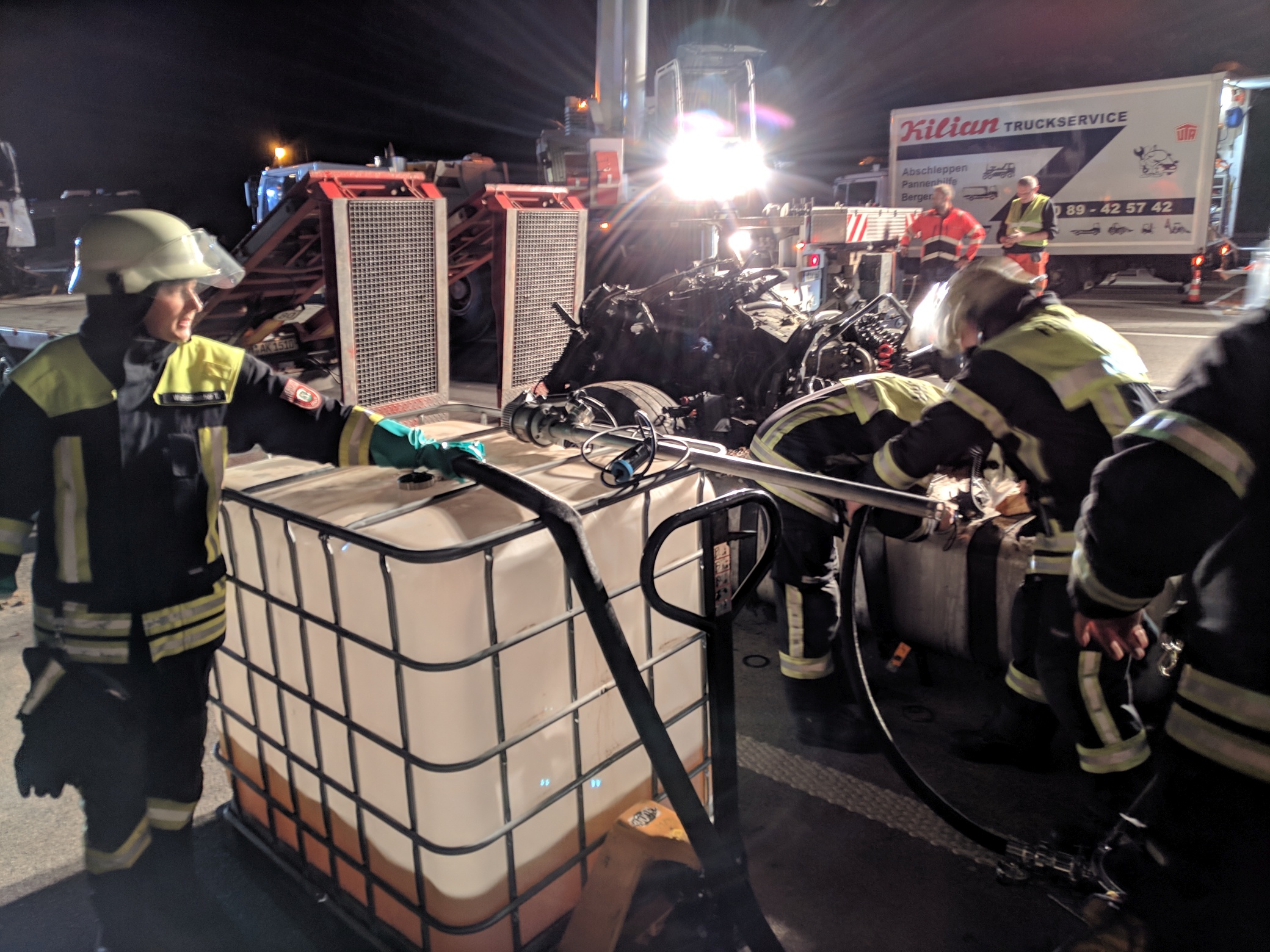 Die Feuerwehr Haar wurde auf die A99 zum Umpumpen von Krafstoff alarmiert.