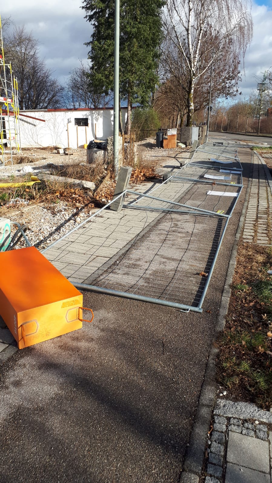 Umgestürzter Bauzaun - Schneiderhofstraße