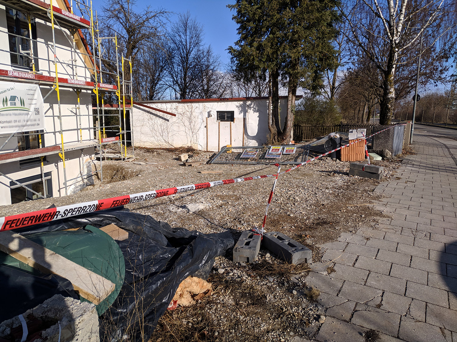Der anhaltende Föhnwind ließ in der Schneiderhofstraße den Bauzaun einer Baustelle auf den Gehweg stürzen. Die Feuerwehr Haar entfernte den Bauzaun und sicherte die Baustelle mit Trassierband ab.