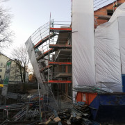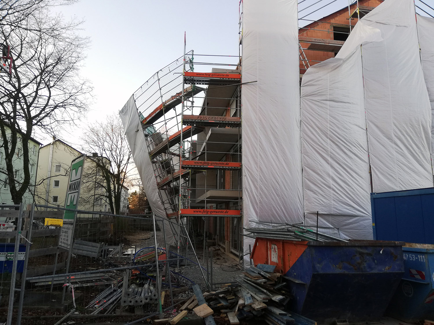 Die Feuerwehr Haar wurde zu einem Baugerüst in die Katharina-Eberhard-Straße alarmiert.