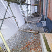 Zur Sicherheit wurden auf der Baustelle an einigen Stellen die Planen von den Grüsten entfernt, um dem Wind weniger Angriffsfläche zu bieten. Die weiteren Arbeiten am Gerüst muss eine Fachfirma übernehmen.