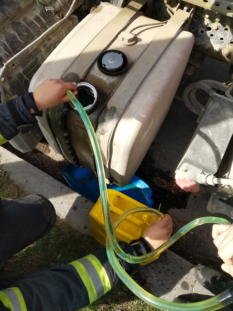 Die Einsatzkräfte fanden einen geparkten LKW vor, dessen Tank auf Grund von Übertankung übergelaufen war. Den ausgelaufenen Dieselkraftstoff galt es daraufhin mit Bindemittel abzustreuen und aufzunehmen. Mit einer Umfüllpumpe wurden noch zusätzlich ca. 15 l Kraftstoff aus dem Tank abgepumpt, um ein erneutes Überlaufen zu verhindern.
