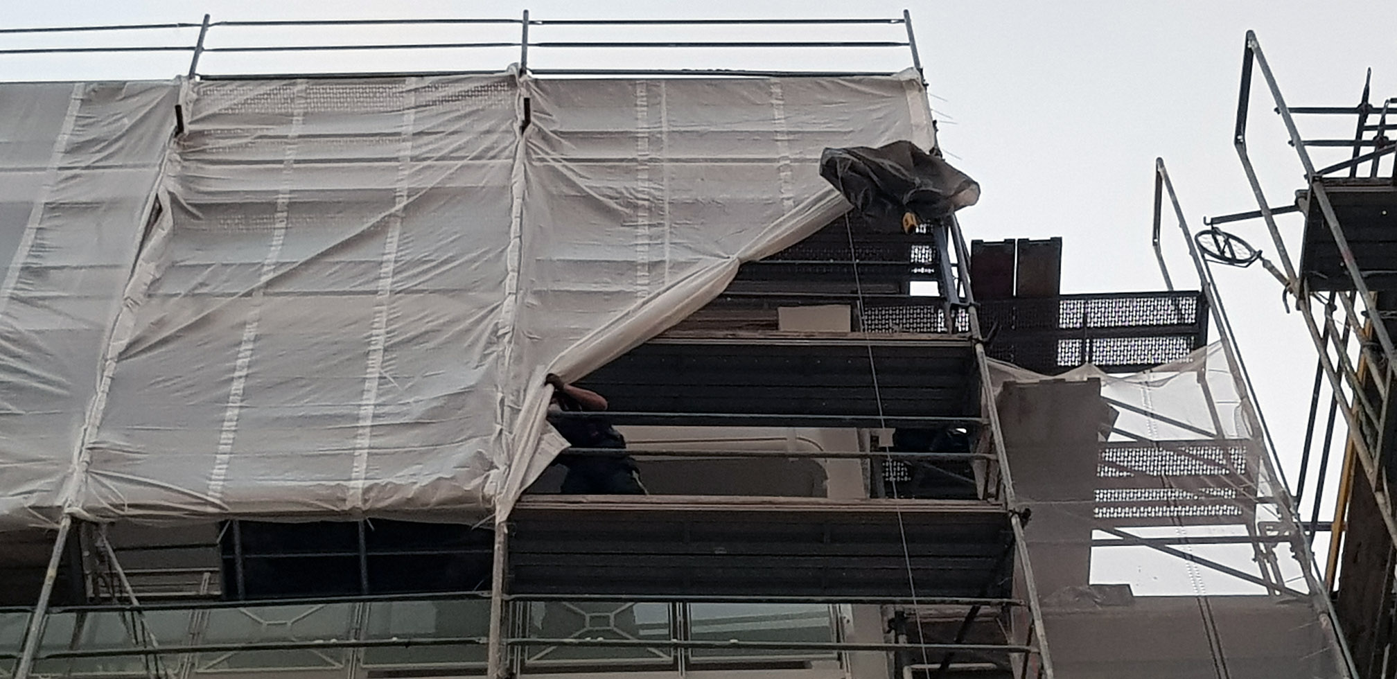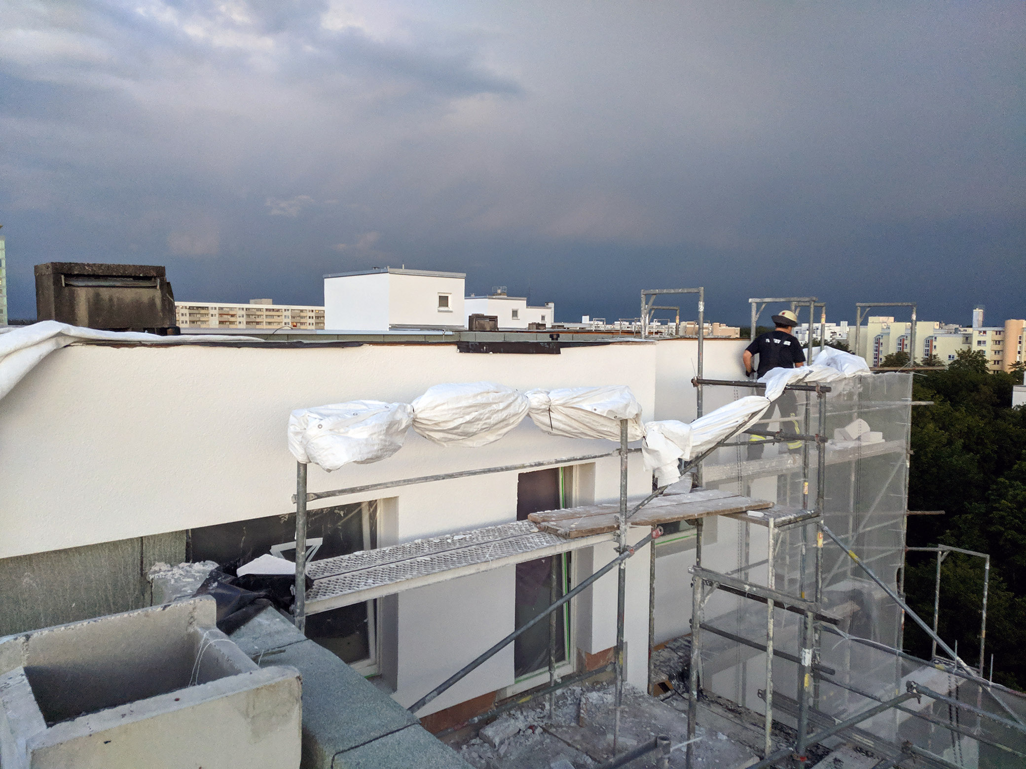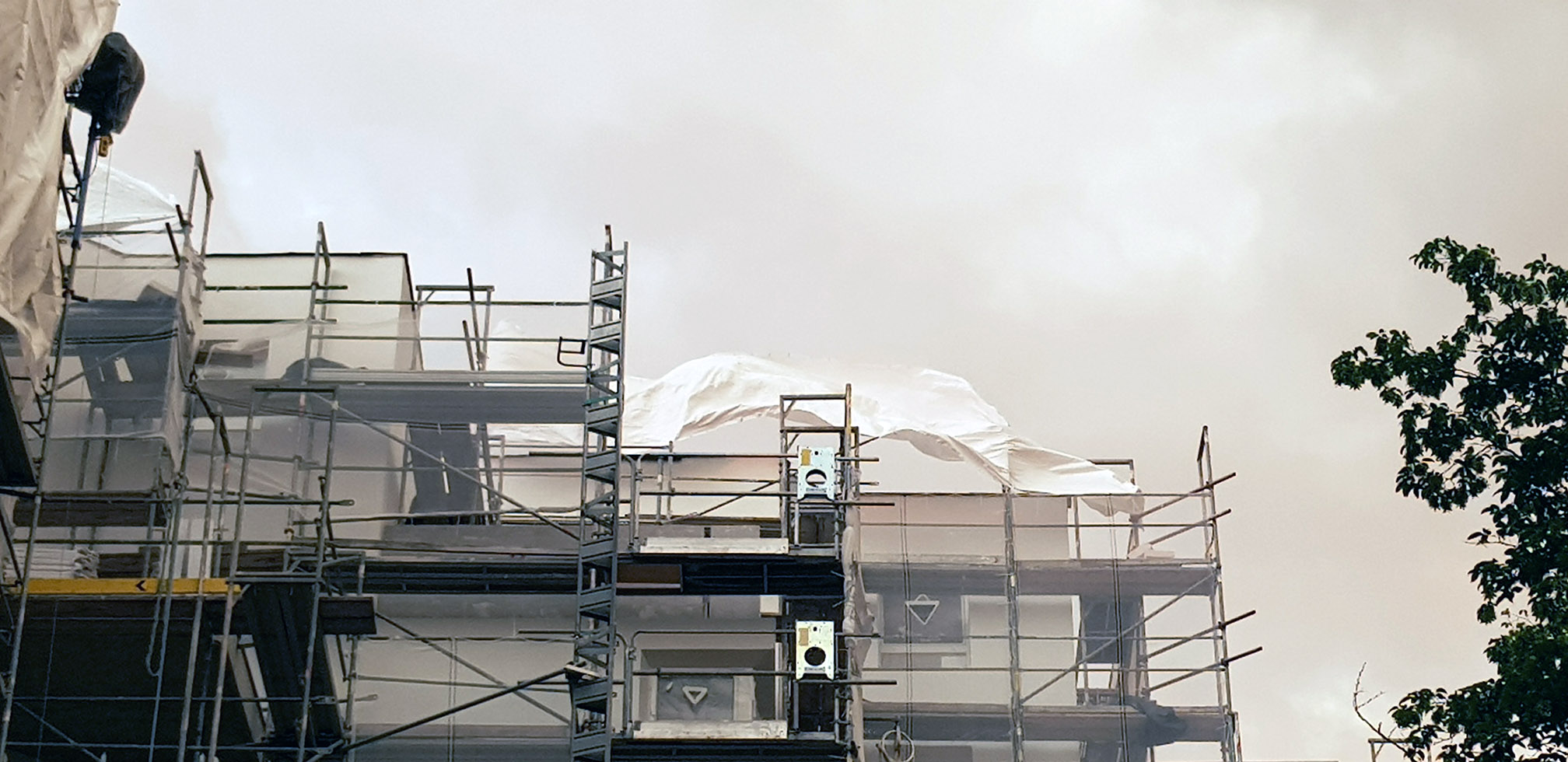 Anwohner im Hubertusweg meldeten eine flatternde Plane an einem Gerüst eines hohen Hauses.